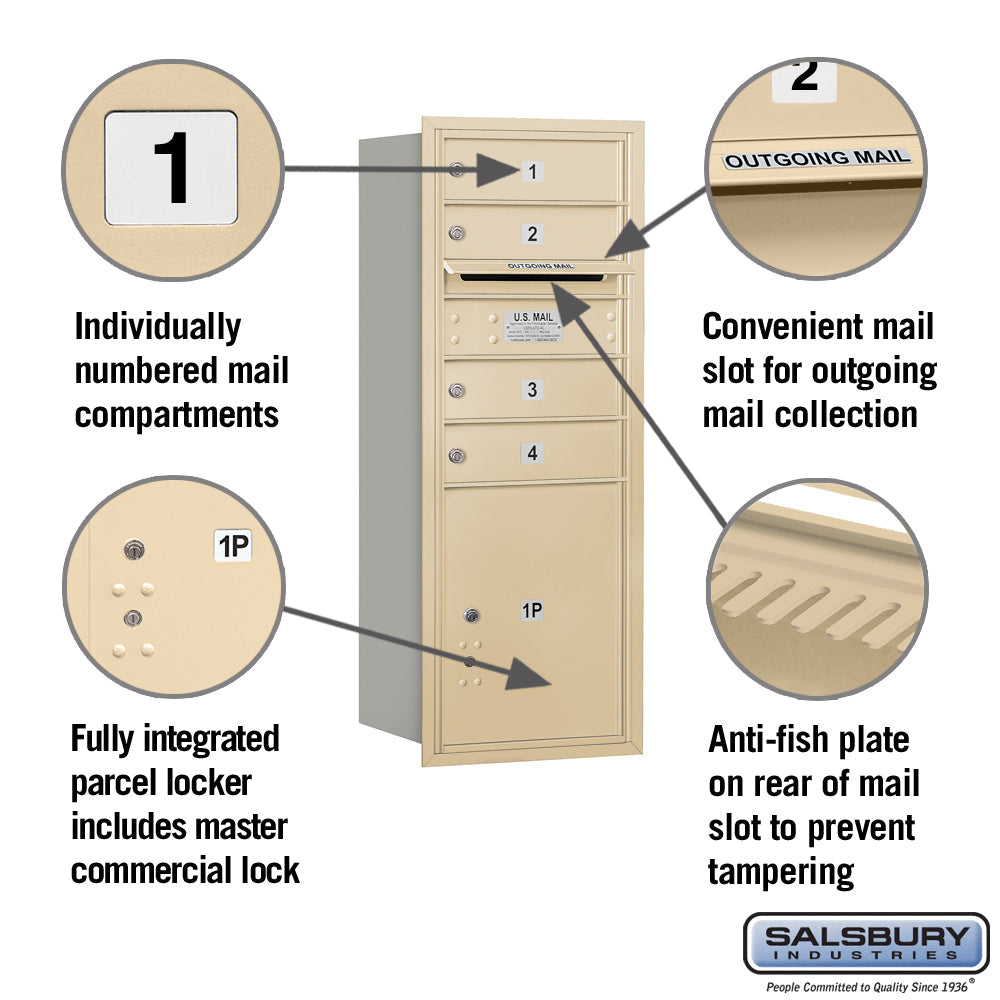 10-Door High Recessed Mounted Mailbox with Parcel Locker - Sandstone