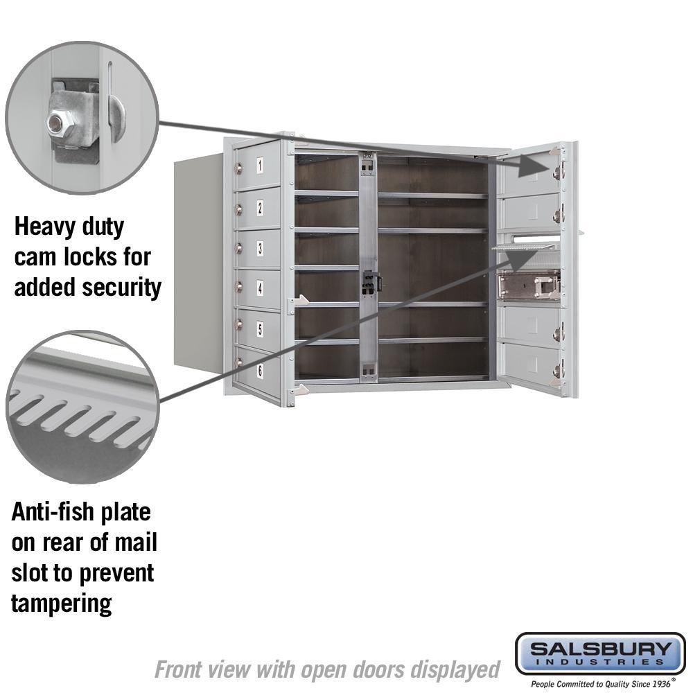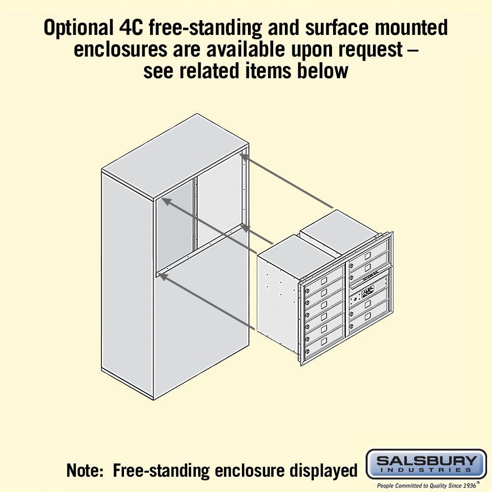 Constructed of heavy duty aluminum and stainless steel hardware, Salsbury 3700 series high security recessed mounted 4C mailboxes can be accessed from the front through two (2) easy opening master door panels. These units provide a convenient means of installing 4C horizontal mailboxes in locations where walls can accommodate a recessed mounted installation. 4C recessed mounted horizontal mailboxes are durable and corrosion resistant that can be used indoors or outdoors and feature a powder coated finish in aluminum, bronze, gold and sandstone. All mailbox doors include a heavy-duty cam lock with a dust/rain shield and includes three (3) keys. The outgoing mail compartment includes a weather protection flap, mail slot and carrier access door, which includes the U.S.P.S master lock access door (lock installed by the U.S.P.S), and anti-fish plate on rear of mail slot to prevent tampering of outgoing mail. Ideal for apartments, condominiums, commercial buildings, residential developments, colleges, schools, private postal centers, corporate mail centers, military bases, government agencies and many other applications. Salsbury Industries is an ISO 9001: 2008 certified company and has excelled in the field of manufacturing since 1936.