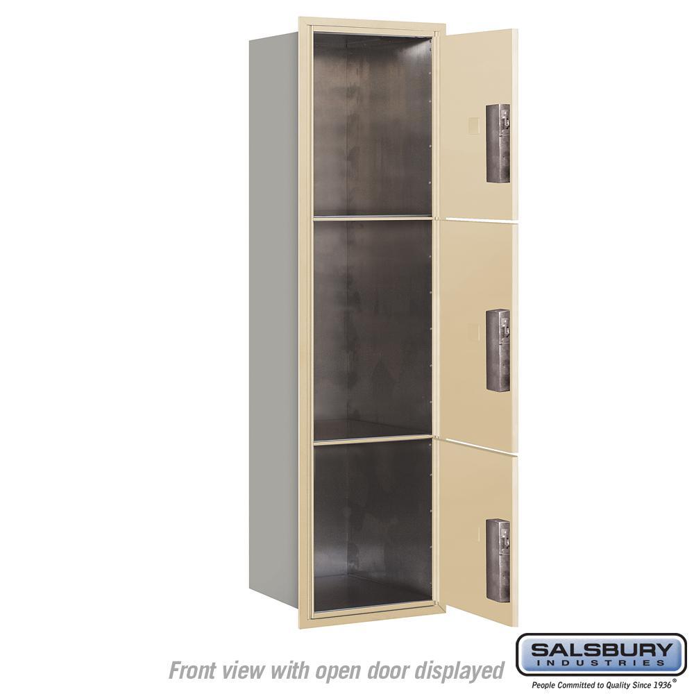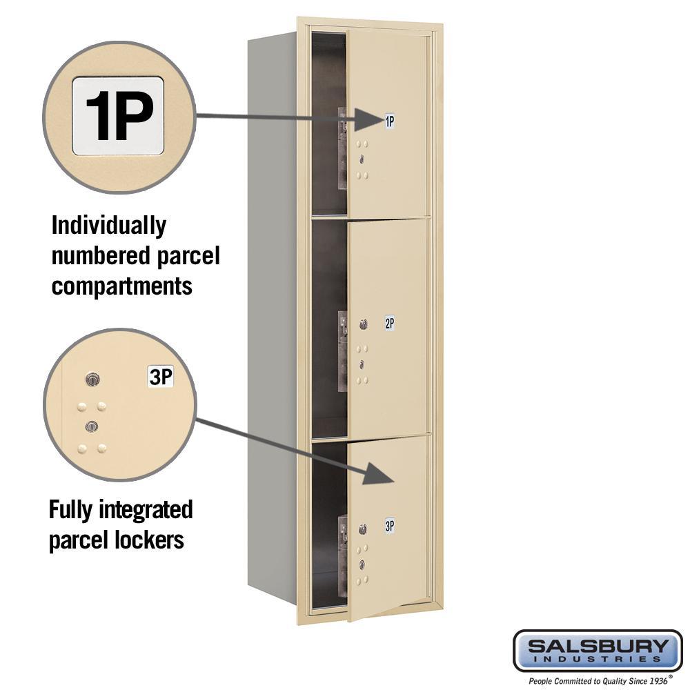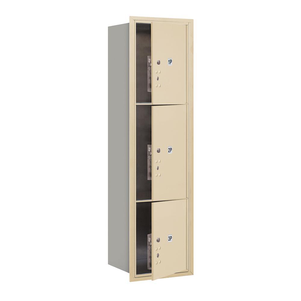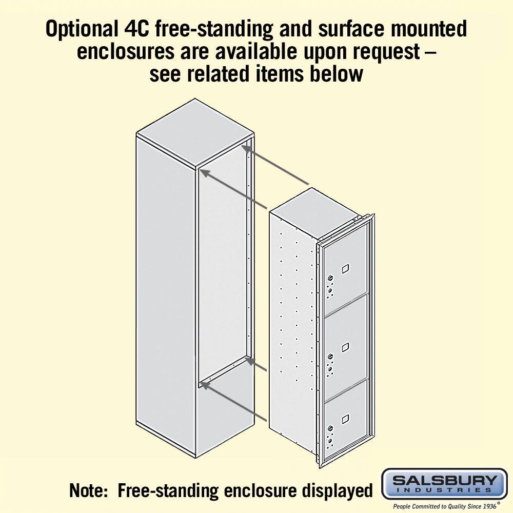 Constructed of heavy duty aluminum and stainless steel hardware, Salsbury 3700 series high security recessed mounted 4C stand alone parcel locker mailboxes can be accessed from the front. These units provide a convenient means of installing 4C horizontal mailboxes in locations where walls can accommodate a recessed mounted installation. 4C recessed mounted horizontal parcel locker mailboxes are durable and corrosion resistant that can be used indoors or outdoors and feature a powder coated finish in aluminum, bronze, gold and sandstone. Each door includes U.S.P.S master lock access (lock installed by the U.S.P.S). The recessed mounted 4C horizontal stand alone parcel locker mailboxes allow tenants a convenient way to receive packages on site. Ideal for apartments, condominiums, commercial buildings, residential developments, colleges, schools, private postal centers, corporate mail centers, military bases, government agencies and many other applications. Salsbury Industries is an ISO 9001: 2008 certified company and has excelled in the field of manufacturing since 1936.