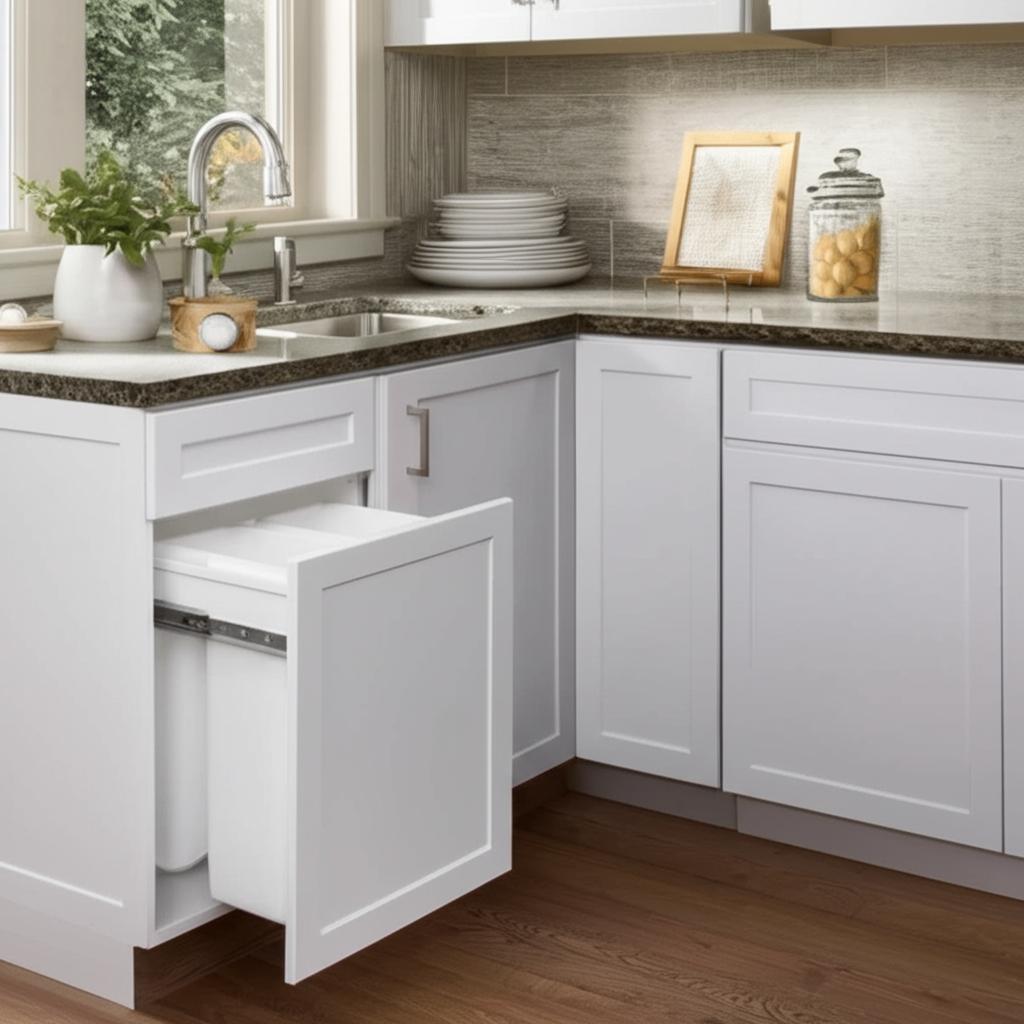 Transform your kitchen into a haven of organization and style with the Hampton Bay Designer Series Melvern White Dual Pull-Out Trash Can Base Kitchen Cabinet. Its sleek shaker door design and bright white finish add a touch of sophistication, while the dual pull-out bins provide practical waste management solutions. Pair it with matching cabinetry for a cohesive and polished look, making it an essential piece for a modern, luxurious kitchen.