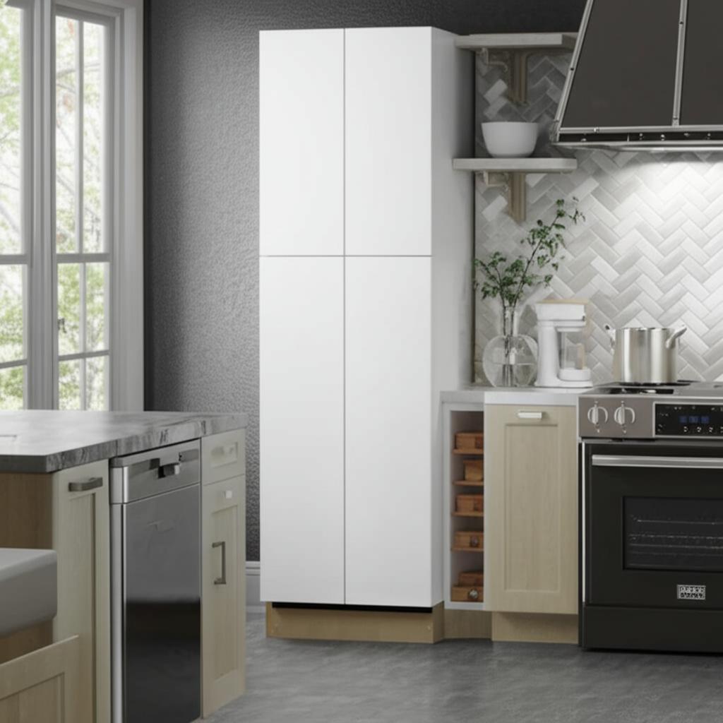 Transform your kitchen into a haven of modern sophistication with the Edgeley Pantry Cabinet. Its clean, white finish and frameless design create a seamless look that complements any contemporary space. The adjustable shelves and soft-close hinges add functionality and luxury, making it a perfect choice for stylish storage. Incorporate this cabinet into your kitchen design for a touch of elegance and practicality.
