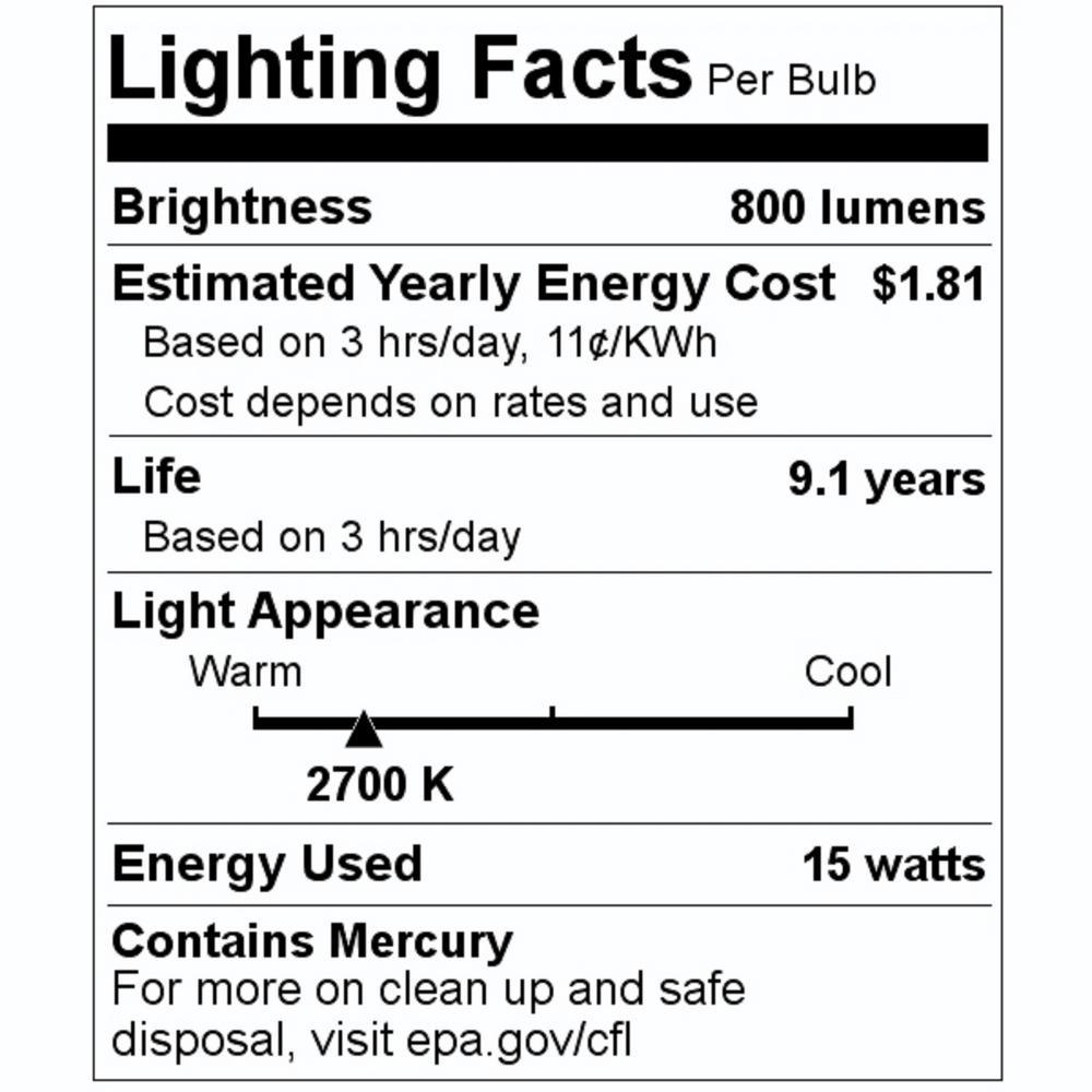 Bulbrite's 15W E26 CFL Light Bulb fits the standardized line voltage socket promoted by Energy Star. Great for all general lighting, can be used in place of standard incandescent bulbs. Saves up to 75% in energy costs.