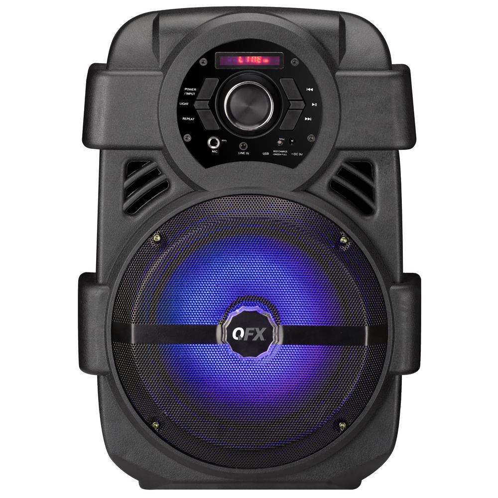 Portable Bluetooth Rechargeable Speaker perfect for indoor or outdoor parties, barbecue's, tailgates, etc. With flashing LED red, green and blue lights your parties will be entertaining. The PBX-8 has an 8 in. woofer for good sound quality and input options such as USB Port and Aux Input. In addition, the Microphone Input allows you to start a Karaoke Party. If those options don't suit your needs you can always play the FM Radio which is included.