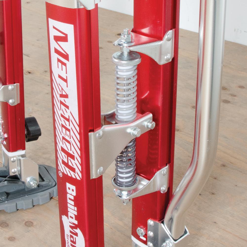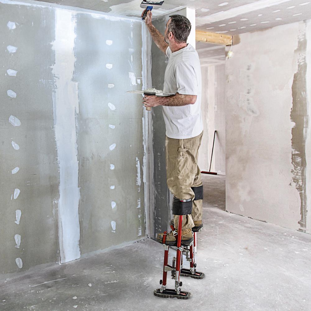 Use these MetalTech 2 drywall stilts for large or small jobs. Adjust them to the needed height as it can go from 24 in. to 40 in. and can be used by pros in their working environment. The aluminum construction is secure and has a self-locking metal buckle strap for even more security. Don't worry about extra height anymore with these stilts.