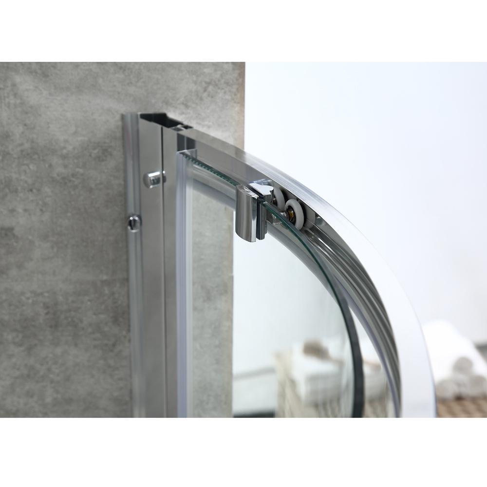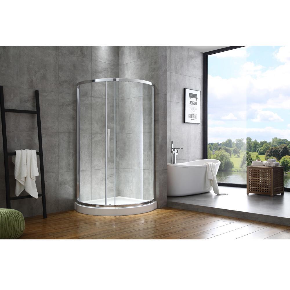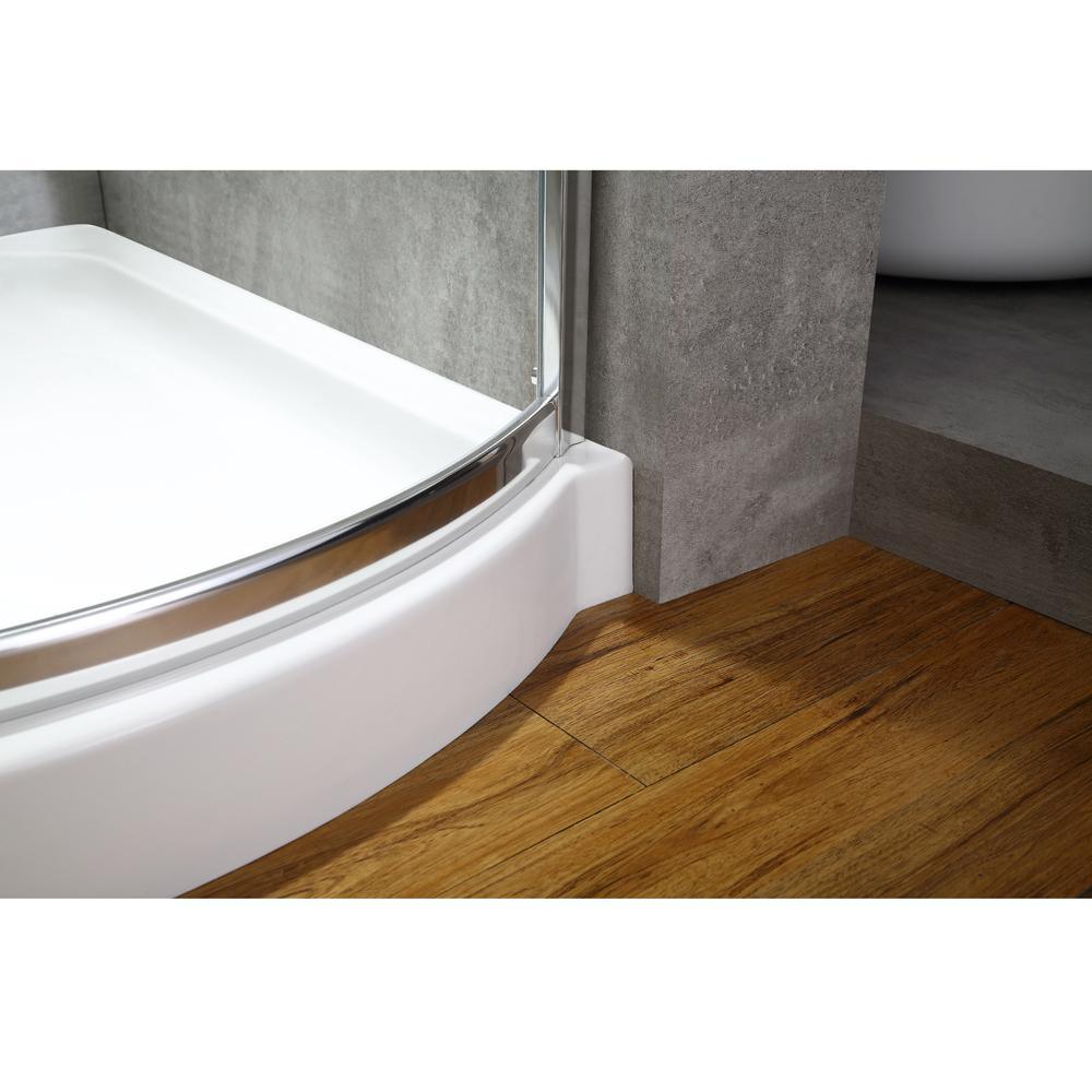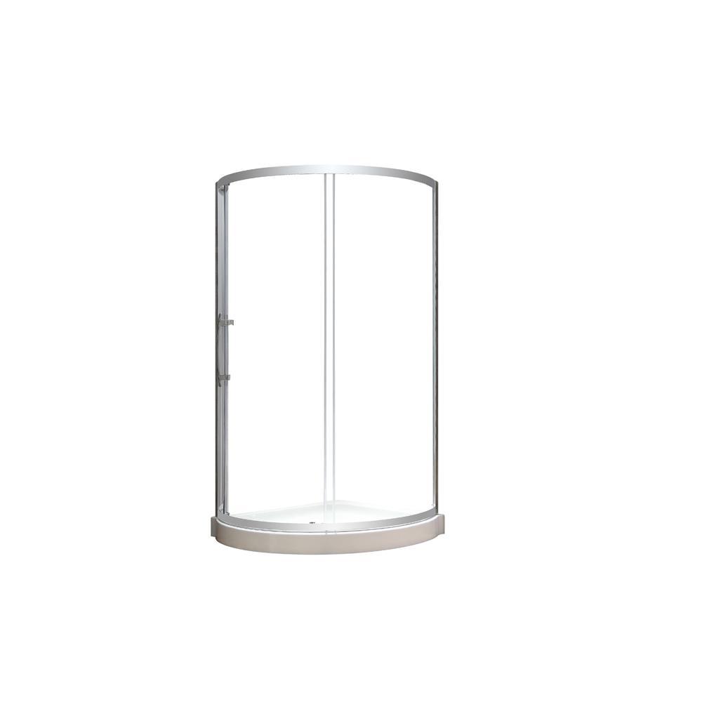 Squeeze extra space out of your bathroom with the Maia 36 in. round corner shower stall kit enclosure by Glacier Bay. Clear glass rounded sliding shower doors with chrome trim and a stylish oversized handle open smoothly and silently on premium rolling hardware. Pure white acrylic low profile shower base threshold height allows easy access in and out.