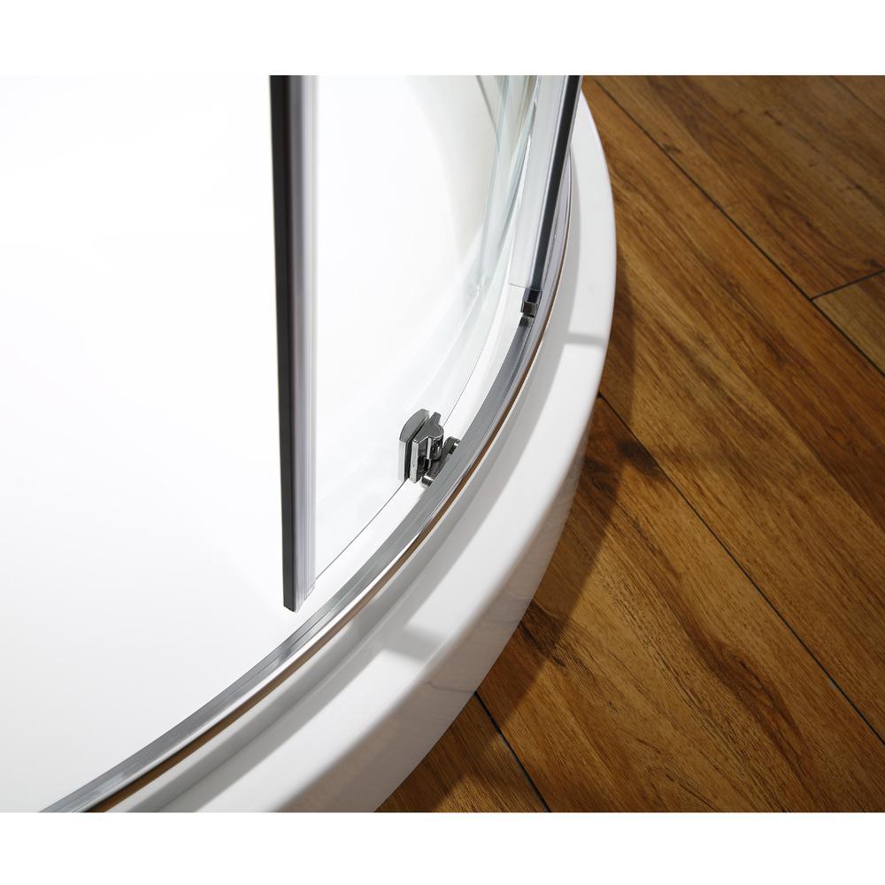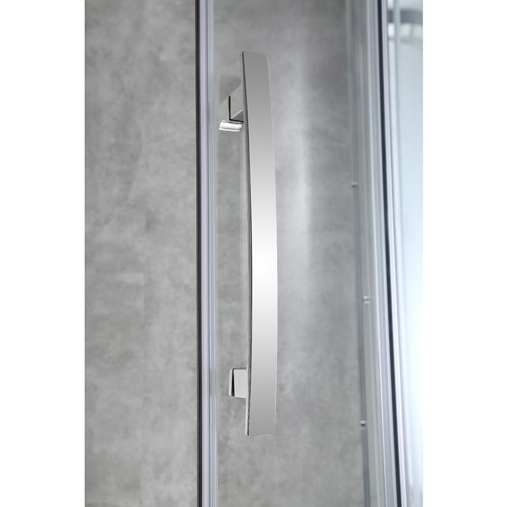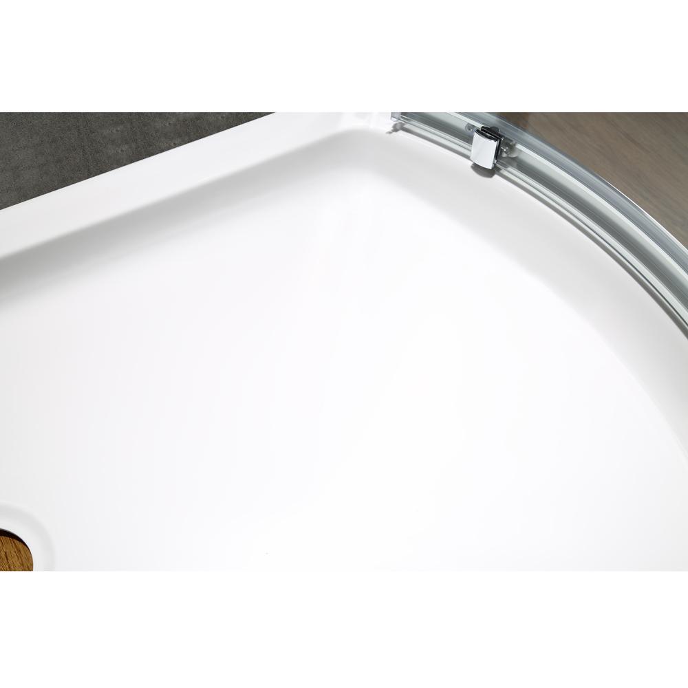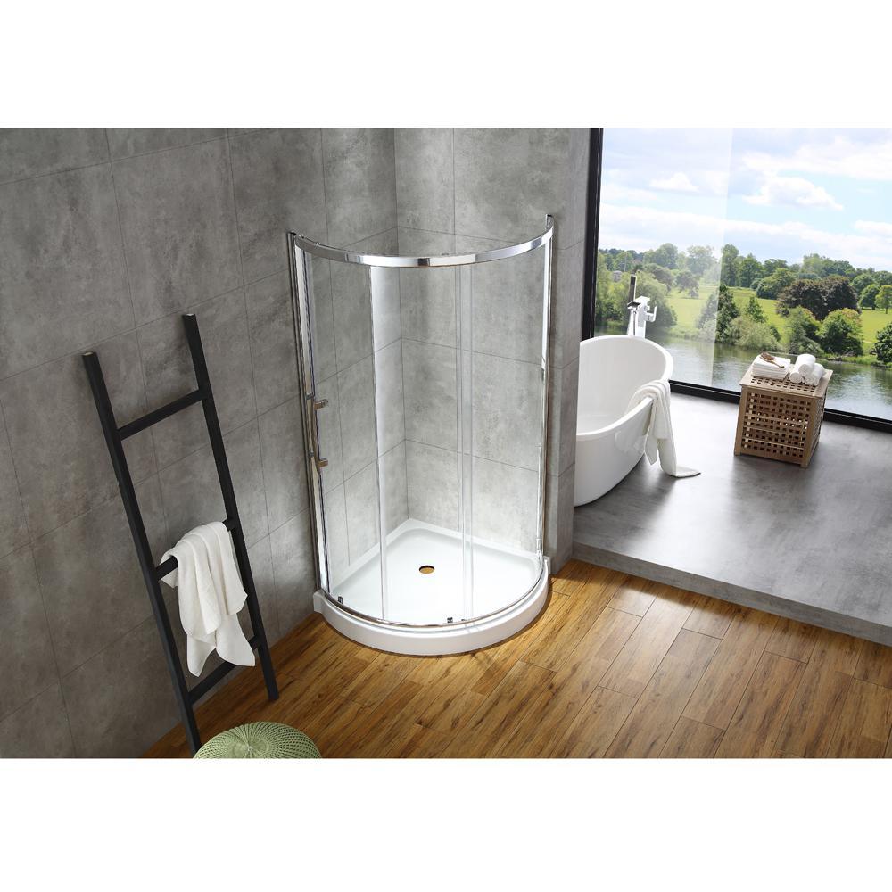 Squeeze extra space out of your bathroom with the Maia 36 in. round corner shower stall kit enclosure by Glacier Bay. Clear glass rounded sliding shower doors with chrome trim and a stylish oversized handle open smoothly and silently on premium rolling hardware. Pure white acrylic low profile shower base threshold height allows easy access in and out.