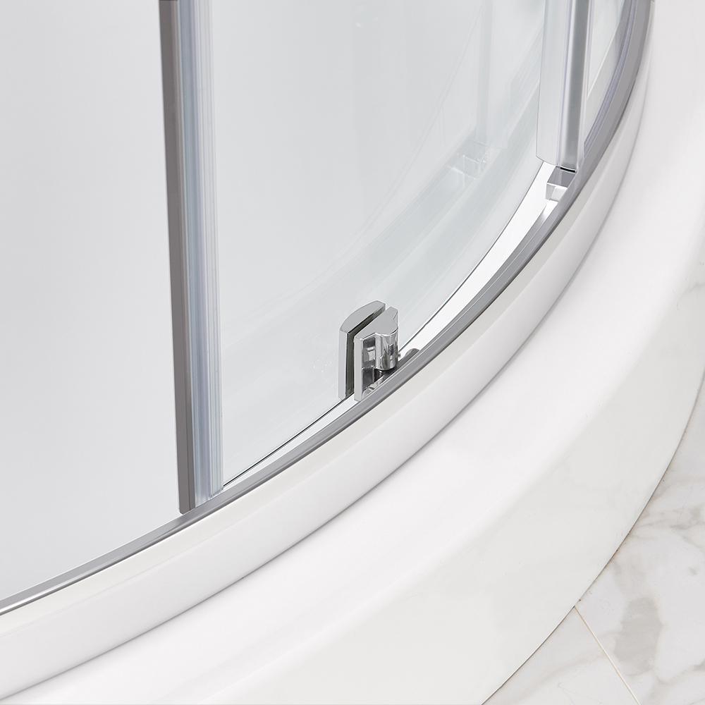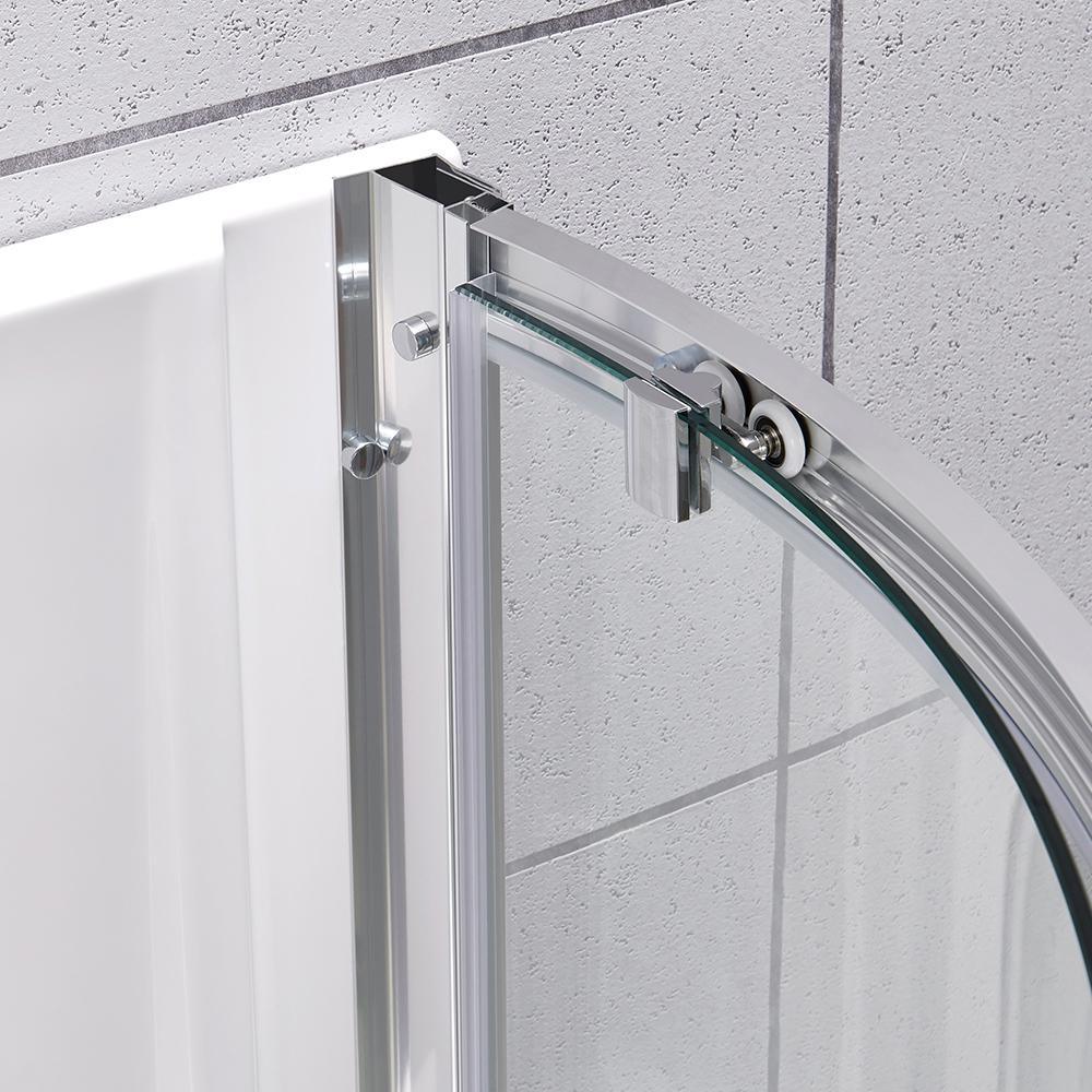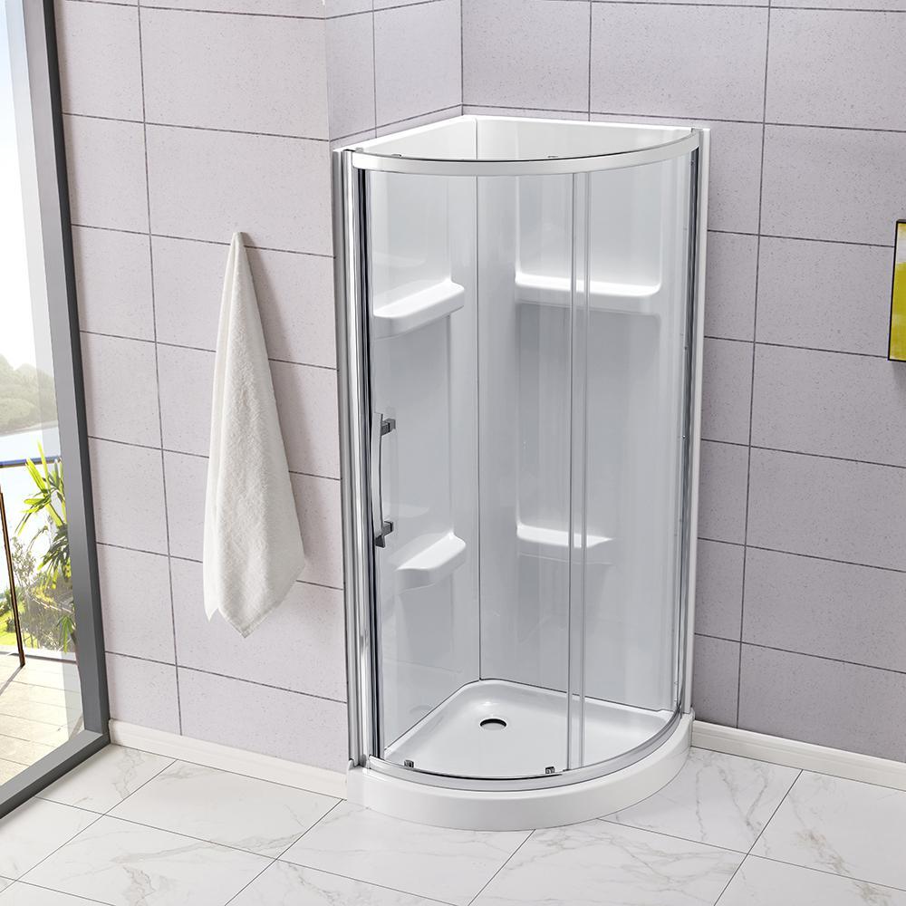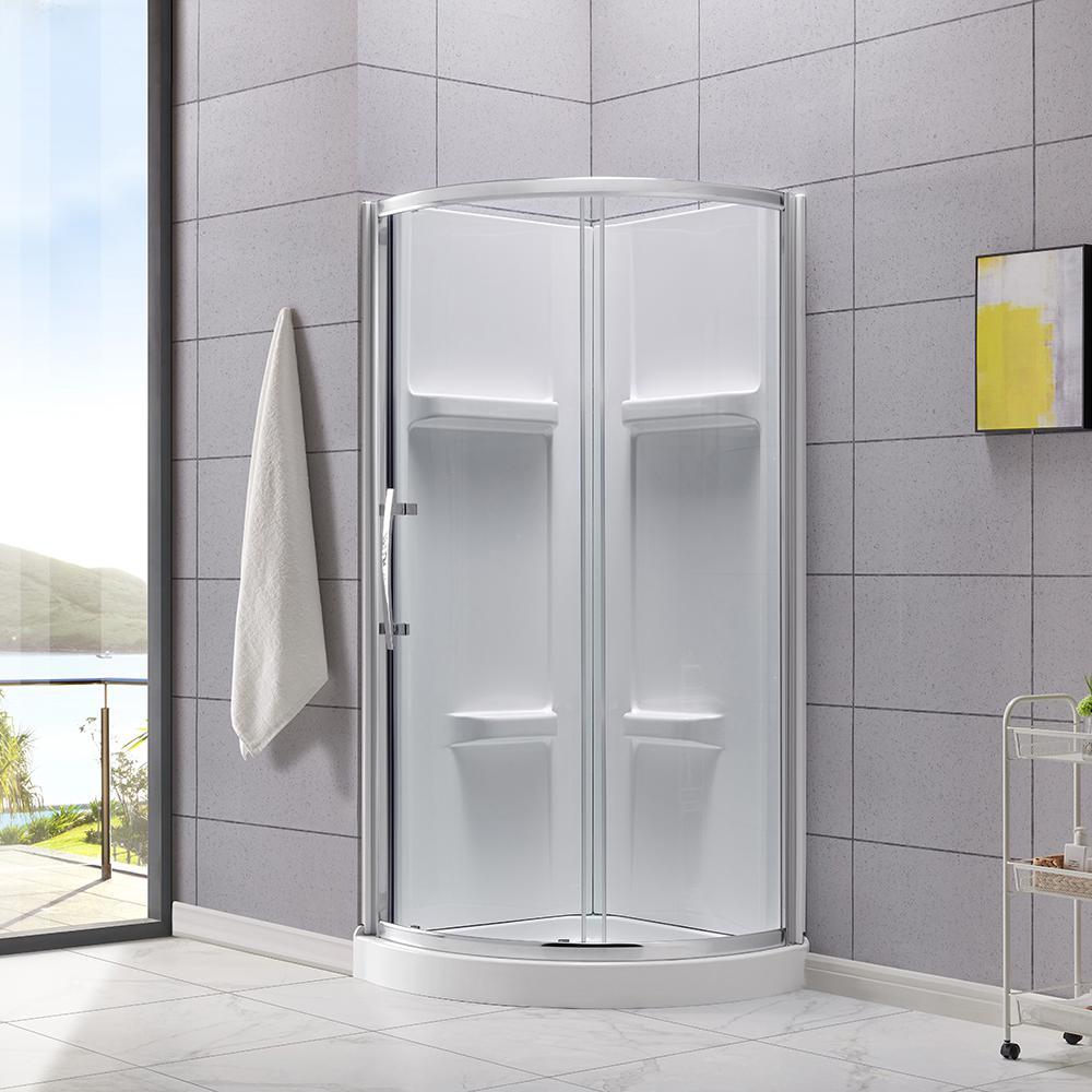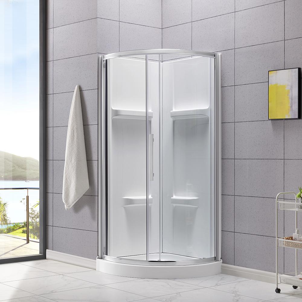 • 3-piece shower kit includes glass sliding doors, acrylic walls and round corner base