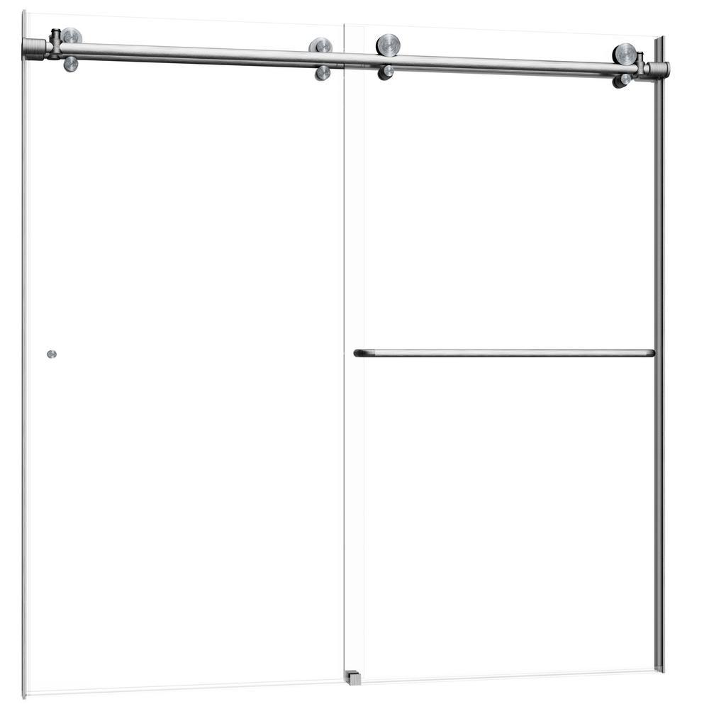 Eclipse 60 in. W x 60.5 in. H Frameless Bypass Sliding Tub Door in Brushed Nickel
