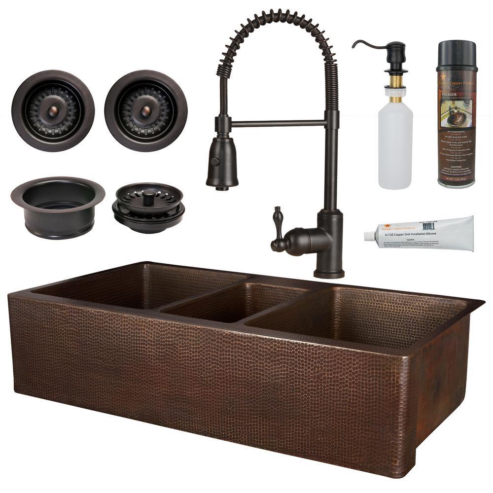 Create an unrivaled focal point for your kitchen with a Kitchen Sink Package from Premier Copper Products. From clean and refined to decorative and ornate, each set includes everything you need to transform any boring kitchen into a designer’s dream, all in one simple package. Coupled with the naturally anti-microbial and anti-bacterial properties of copper, a patina that will age better than a fine wine, and a craftsmanship unrivaled by the best artisans, our copper kitchen sink packages are the ultimate in luxury, functionality, and design.