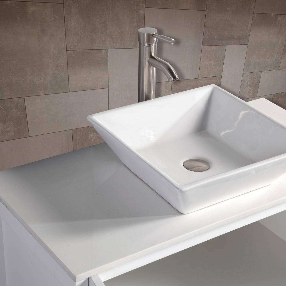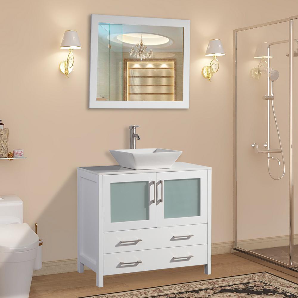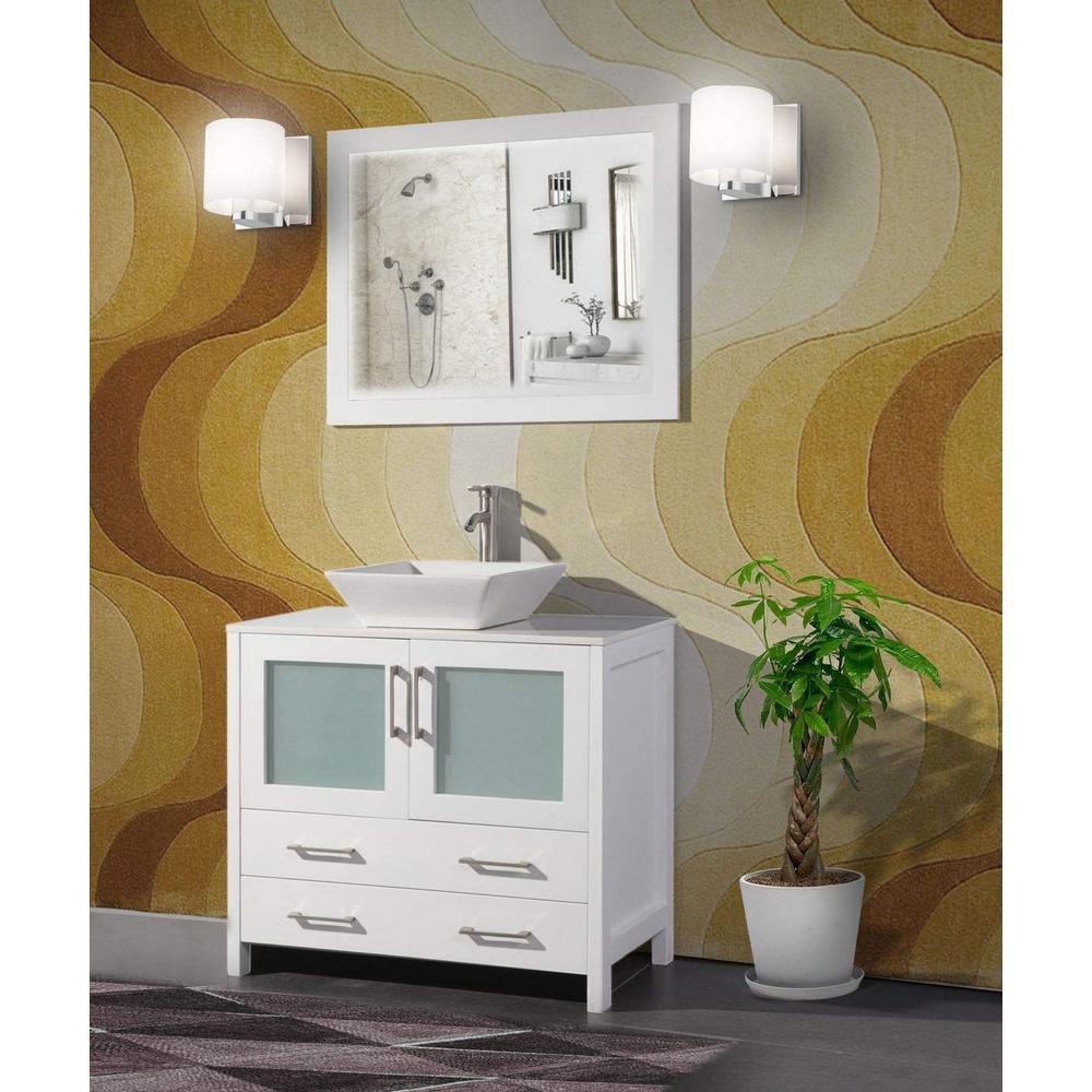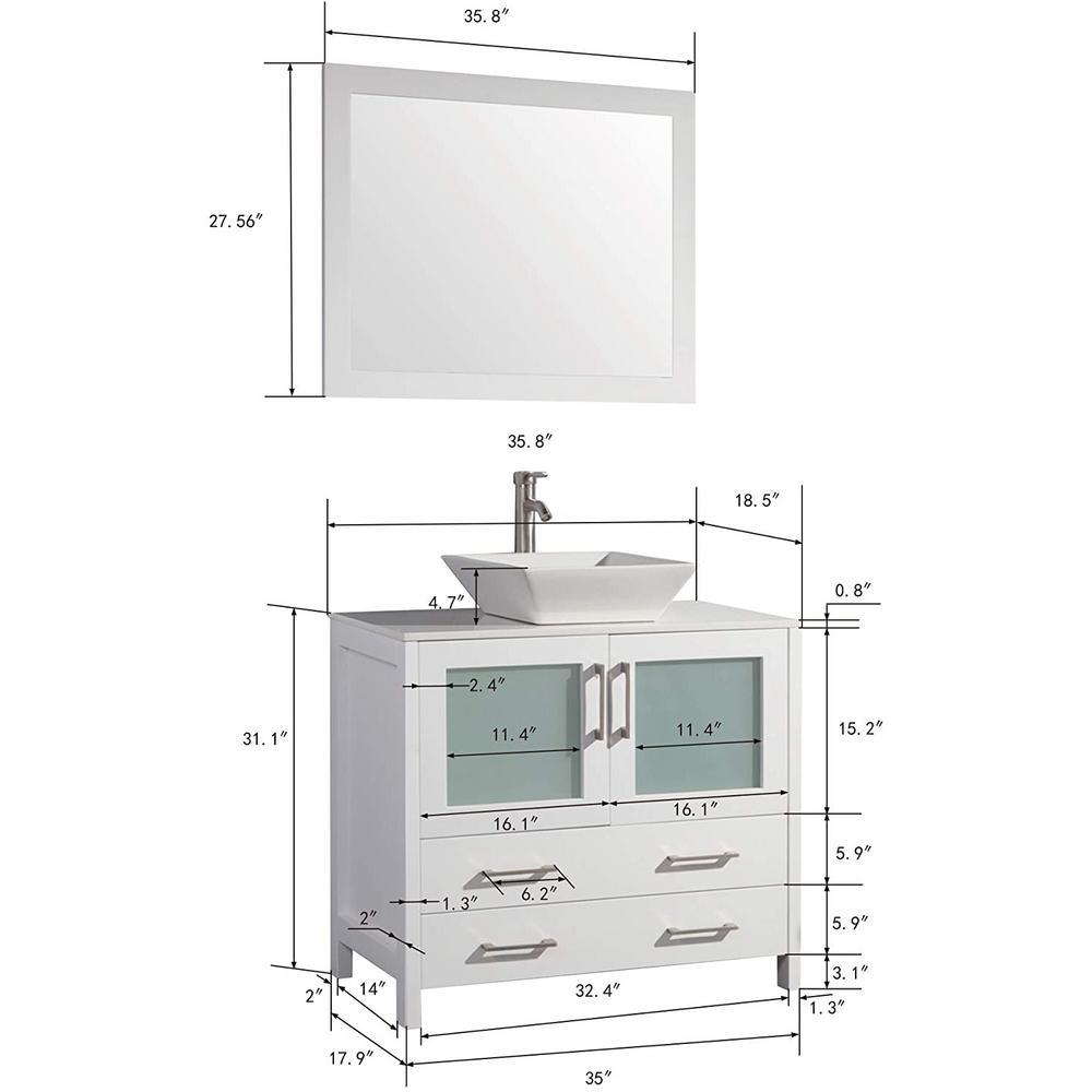 This modern 36 in. single sink bathroom vanity set with ceramic vanity top is a perfect combination of elegance and value. The soft-closing doors and drawers add another touch of class. The vanity set includes the vanity, sink, top, mirror and cabinet hardware.