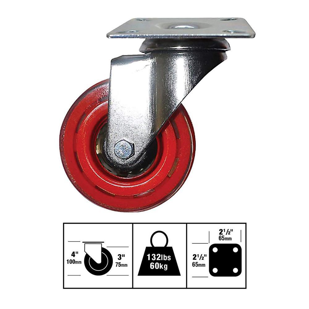 3 in. Rhubarb Red Swivel Caster with 132 lbs. Load Capacity (4-Pack)