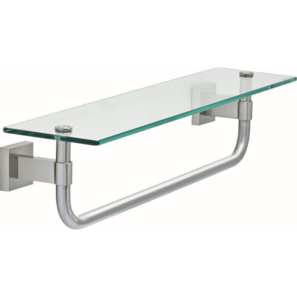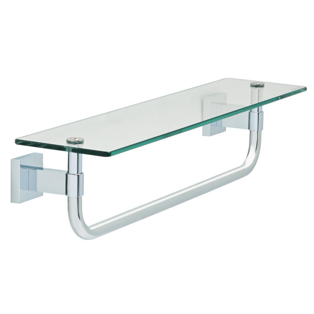 • Glass shelf with towel bar is perfect for holding and storing multiple items while having easy access to towels
