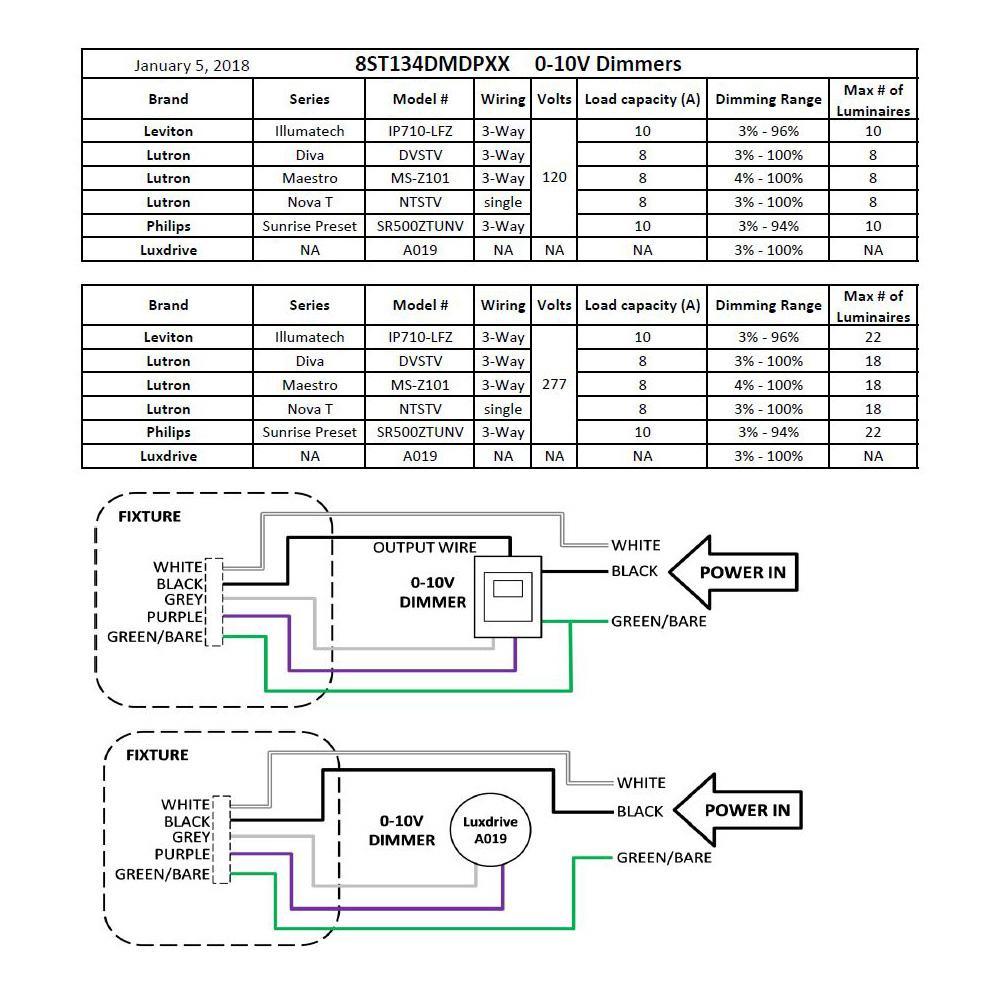 • 10-100% dimming range with Lutron or Leviton 0-10-Volt dimmers