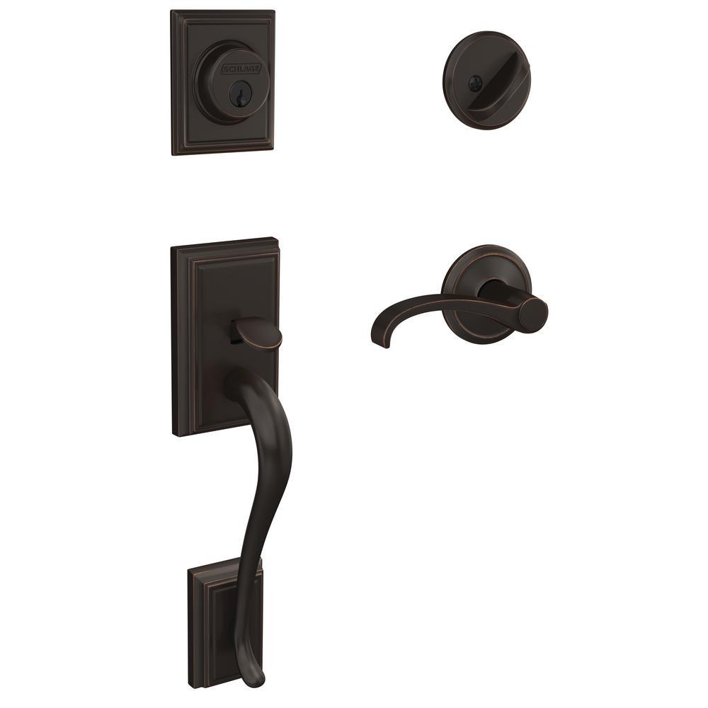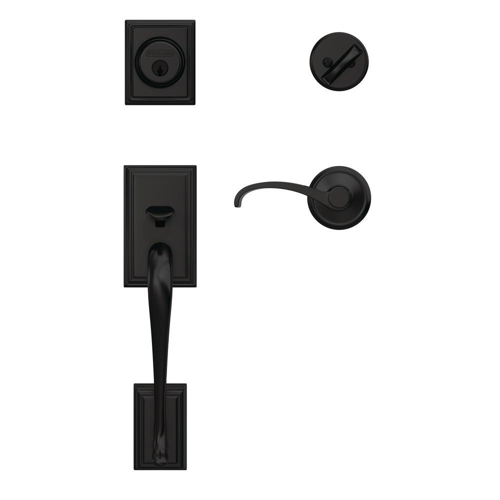 The ultimate in entryway style, the Schlage Custom Addison Single Cylinder Handleset and Interior Whitney Lever with Alden Trim in Matte Black makes your front door unforgettable. Low profile interior trim creates a high-style designer look. The Whitney lever adds an authentic touch of traditional style reminiscent of classic wrought-iron scrollwork, while the Addison grip's distinguished look incorporates subtle details without losing its classic simplicity. The striking appearance of the Matte Black finish creates an elegant look that's sure to be noticed in any style setting. Coordinate the style and finish of your homes door hardware inside and out by pairing with Schlage Custom interior door hardware.