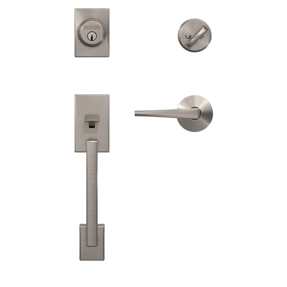 The ultimate in entryway style, the Schlage Custom Century Single Cylinder Handleset and Interior Eller Lever with Kinsler Trim (Satin Nickel) makes your front door unforgettable. Low profile interior trim creates a high-style designer look. The intrepid style of the Eller lever pairs the soft curves of Scandinavian design with the precise, clean surfaces of minimalism, while the Century grip is chic with a delicate, slightly curved shape - especially when wrapped in our versatile Satin Nickel finish. Coordinate the style and finish of your homes door hardware inside and out by pairing with Schlage Custom interior door hardware.