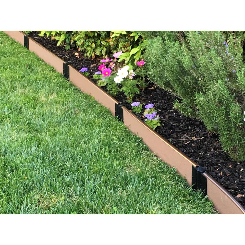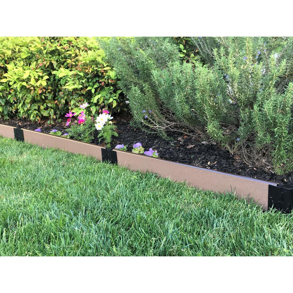 Make your landscape pop. Our tool-free landscape edging kits make it simple to boost your curb appeal and solve a host of landscaping issues. Create simple borders, pathways or even small retaining walls. Your kit comes with everything you need to cover 16 lin. ft.. You get 4 of our revolutionary 1 Uptown Brown straight composite boards, and four 1 snap-lock anchor brackets. Brackets simply slide and snap to lock securely to the board. Anchor brackets grip the ground tight, so your edging will stay put no matter the weather. The serrated stakes will also help to keep your borders from being disturbed by mowers or any human activity. Our Raised Garden Bed Anchor Brackets pivot 270° allowing endless design options. Add gravel or mulch between sections to create paths or textural interest. When creating pathways, be sure to line with landscape fabric to prevent weeds before filling with gravel or mulch. Curved landscape edging kits are also available. Feel free to mix and match to create a border that flows with your landscape. You can stack your Backyard Borders higher to create deeper borders or to create levels and cascading features. Simply order additional 1 Uptown Brown straight boards and 1 snap lock stacking brackets (your kits come with anchor brackets). The modular design of all Frame It All products means that you can add, stack, re-design or re-purpose your materials any time the mood strikes.