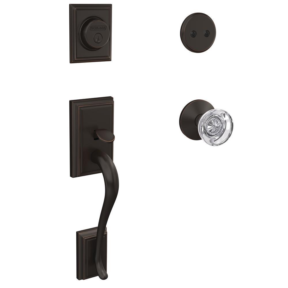 - Style and finish pair with Schlage custom interior and exterior door hardware so you can coordinate your home's hardware style inside and out