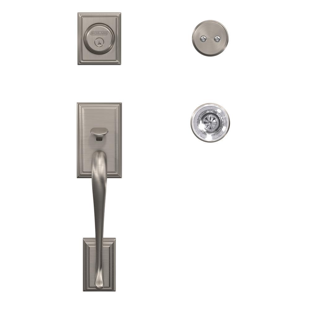 The ultimate in entryway style, the Schlage Custom Addison Inactive Handle set with Hobson Glass Knob and Kinsler Trim (Satin Nickel) is perfect for use as a decorative door pull on a pair of non-latching doors. Low profile interior trim creates a high-style designer look. The Hobson glass knob is the perfect high-end statement piece for styles ranging from traditional to eclectic transitional, while the Addison grip grip's distinguished look incorporates subtle details without losing its classic simplicity especially when wrapped in our versatile Satin Nickel finish.