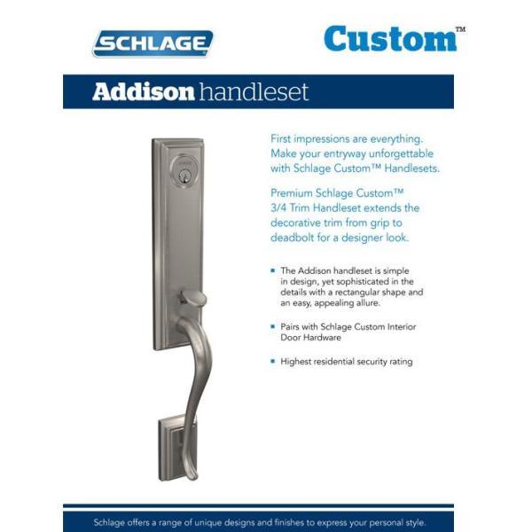 • Style and finish pair with Schlage custom interior door hardware so you can coordinate your home's hardware style inside and out