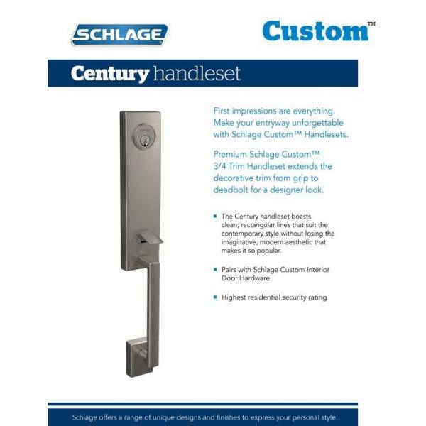 - Style and finish pair with Schlage custom interior door hardware so you can coordinate your home's hardware style inside and out