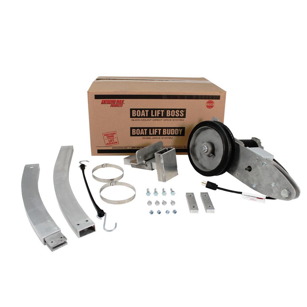 The Boat Lift Buddy Wheel Drive System is designed for boat lift owners looking for a cost-effective complete one-box system with quick installation and reliable service. Boat Lift Buddy installs in minutes with a universal design that fits virtually all lifts with a manual wheel. Installation requires only common hand tools. This 12-volt system is designed for lifts without access to shore power, coming equipped with a 15' cable and quick disconnect plug to run off your boat's battery. Each unit is tested three times before packaging to insure customer satisfaction. Boat Lift Buddy is backed by a two-year warranty. Whether you're on the lake or the river, Boat Lift Buddy is your friend on the water. Not recommended for a run of more than 100' between the Boat Lift Boss and the power source.