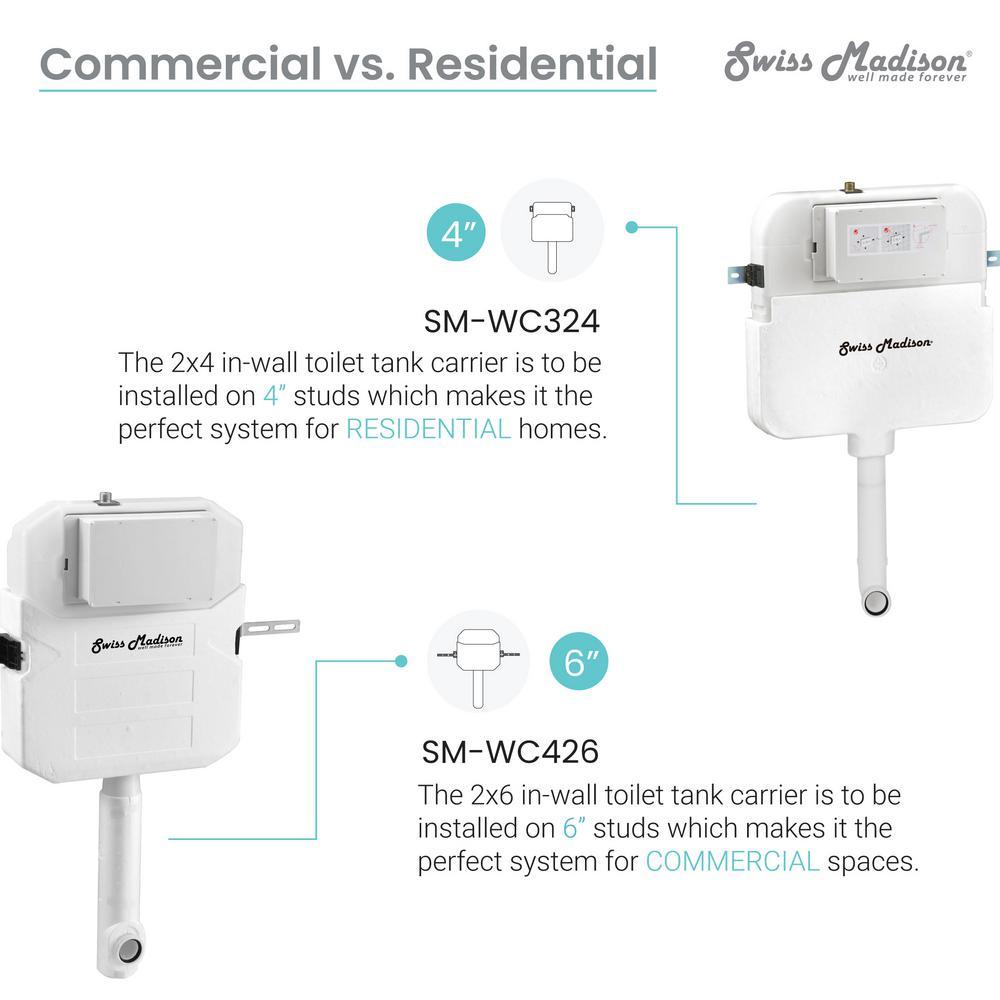 • Installed on 2 in. x 4 in. studs behind the wall for thinner residential walls