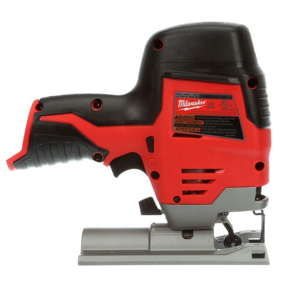Compact and lightweight, the Milwaukee M12 12-Volt Lithium-Ion Cordless Compact Jig Saw delivers superior cutting power suitable for a wide range of trade applications. Powered by the M12 REDLITHIUM battery system, the tool is ideal for making quick cuts in wood, metal, wall tile or plastics without the hassle of a cord. The hybrid grip handle design combines the best features from both top handle and barrel grip jig saws to provide superior cut control during curved cutting applications. A 3/4 in. stroke length and 0-2800 SPM variable speed trigger deliver fast and accurate cuts and with the QUIK-LOK T-Shank blade clamp and tool-free 450 bevel capability, tool adjustments are quick and easy. Suitable for professional use or for DIY projects, this jig saw is durably made for long-lasting and reliable use. Includes A Free M12 Compact 2.0Ah Battery Pack (48-11-2420).