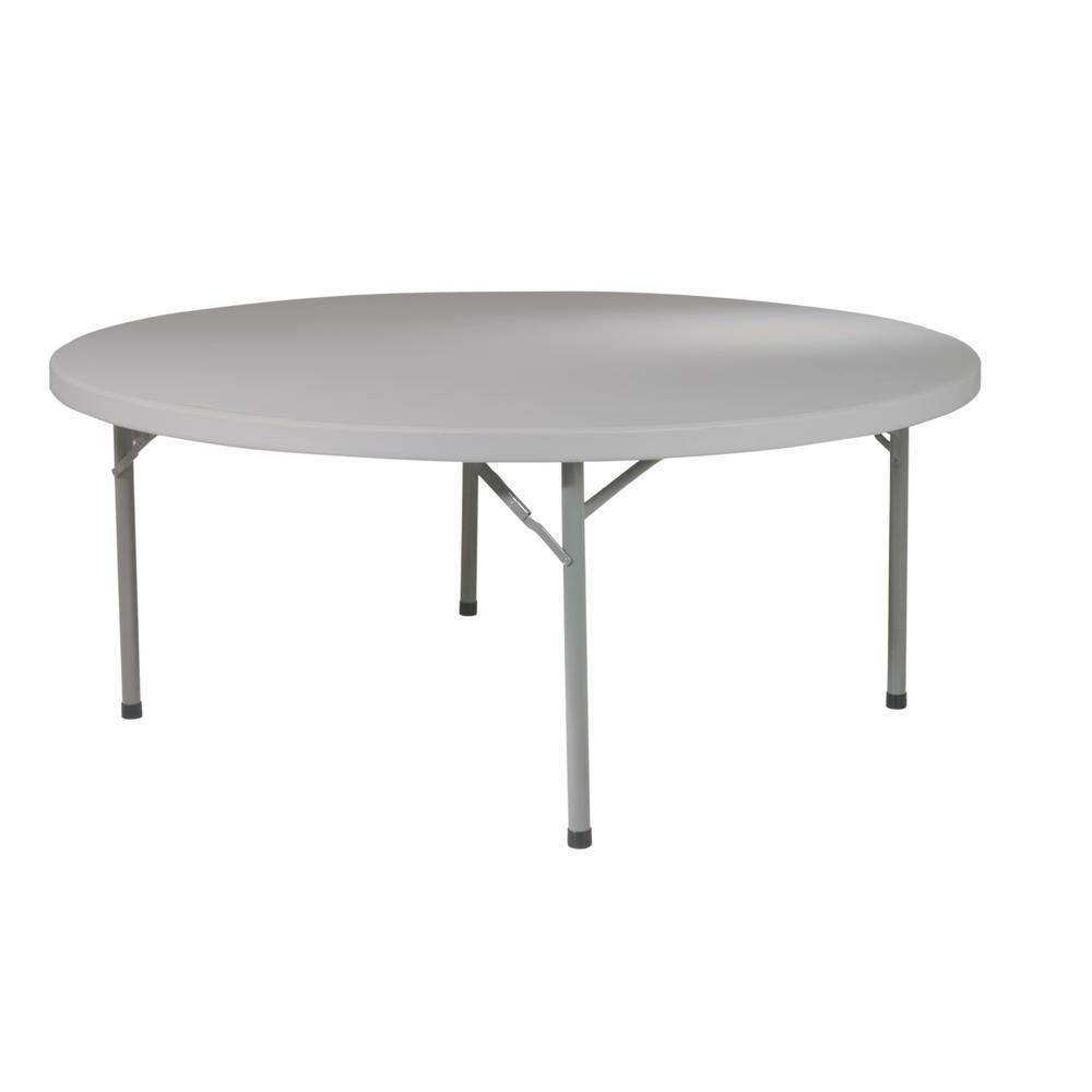 Ideal for both indoor and outdoor use, this round folding table is perfect for family gatherings, kids crafting stations, tailgate parties, or any other time you need temporary table space. The four foot table surface is supported by a powder coated tubular steel frame for durability and support, while the plastic foot caps protect your floor from scratches during use. Folding legs and a lightweight design allow for easy storage when not in use. Youll always have the extra table space you need with Work Smart 71 Round Resin Multipurpose Table.