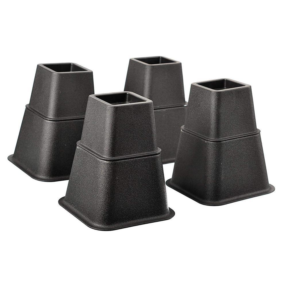 Home-it USA Heavy Duty Adjustable Bed Risers or furniture risers is a 8-piece set of plastic bed risers, allows you to raise your bed, dresser, table or chair by 3 in., 5 in. or 8 in. Bed lifts can provide simple DIY under-bed storage and work wonderfully as dorm bed risers. Bed Riser set includes four large and four small riser cups that may be used alone or stacked. Bed leg or caster fits safely and securely into the recess cup built into the bed riser. The risers are likewise ideal for elevating work tables to reduce back aches and pains. It also reduces the effort to stand from low sofas/couches when you apply these furniture risers to them.