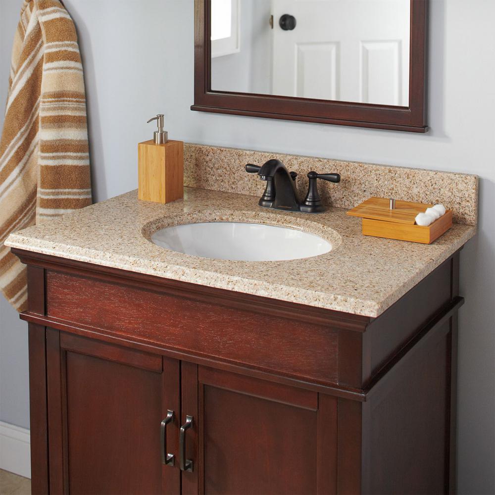 Transform your bathroom with a beautiful granite vanity top with pre-attached undermount vitreous china bowl. This top is perfect for quick and easy remodels. Obtain the beauty and durability of natural stone without hiring a professional. It is easy to install and fits directly on most standard 24 in W x 18 in. D vanity cabinets. It is sure to give your bathroom that stylish, finishing touch.