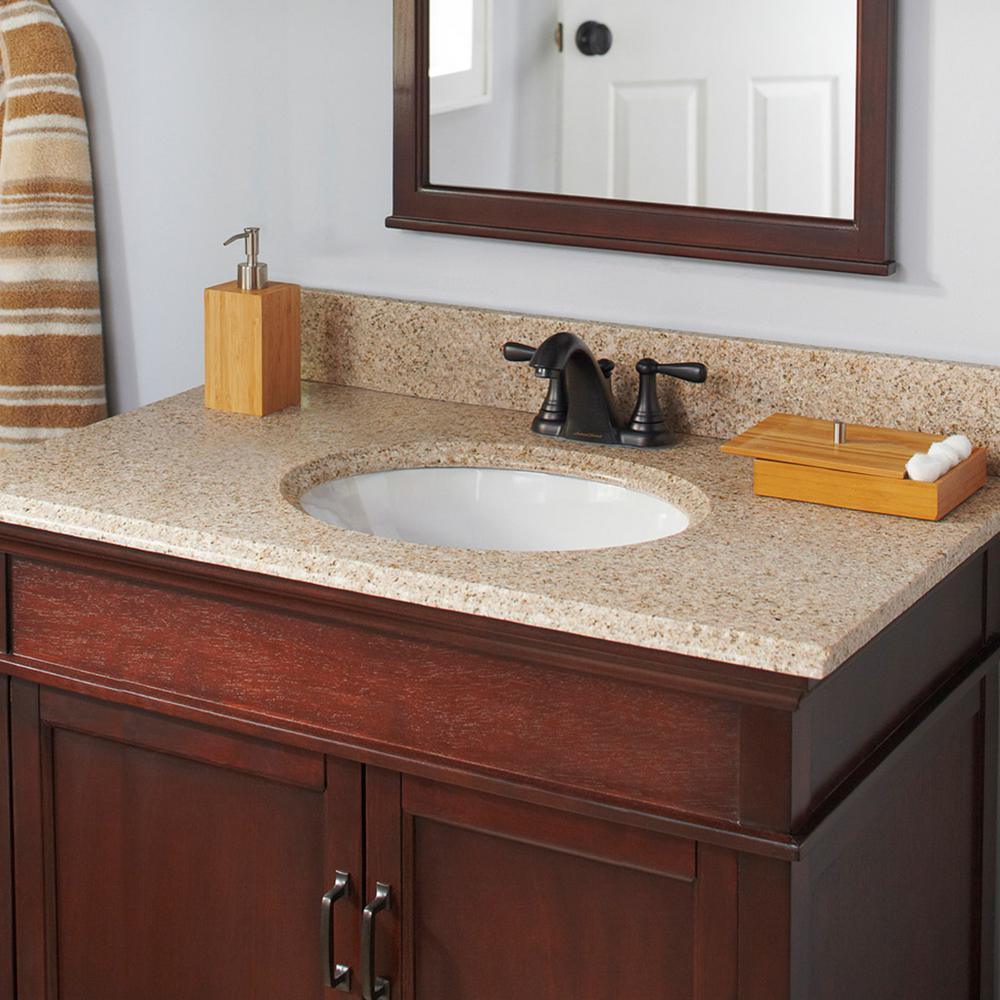 Transform your bathroom with a beautiful granite vanity top with pre-attached undermount vitreous china bowl. This top is perfect for quick and easy remodels. Obtain the beauty and durability of natural stone without hiring a professional. It is easy to install and fits directly on most standard 36 in. W by 18 in. D vanity cabinets. It is sure to give your bathroom that stylish, finishing touch.