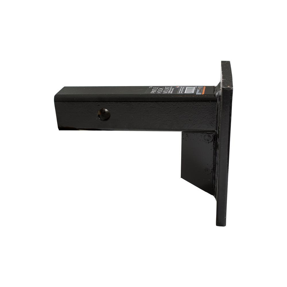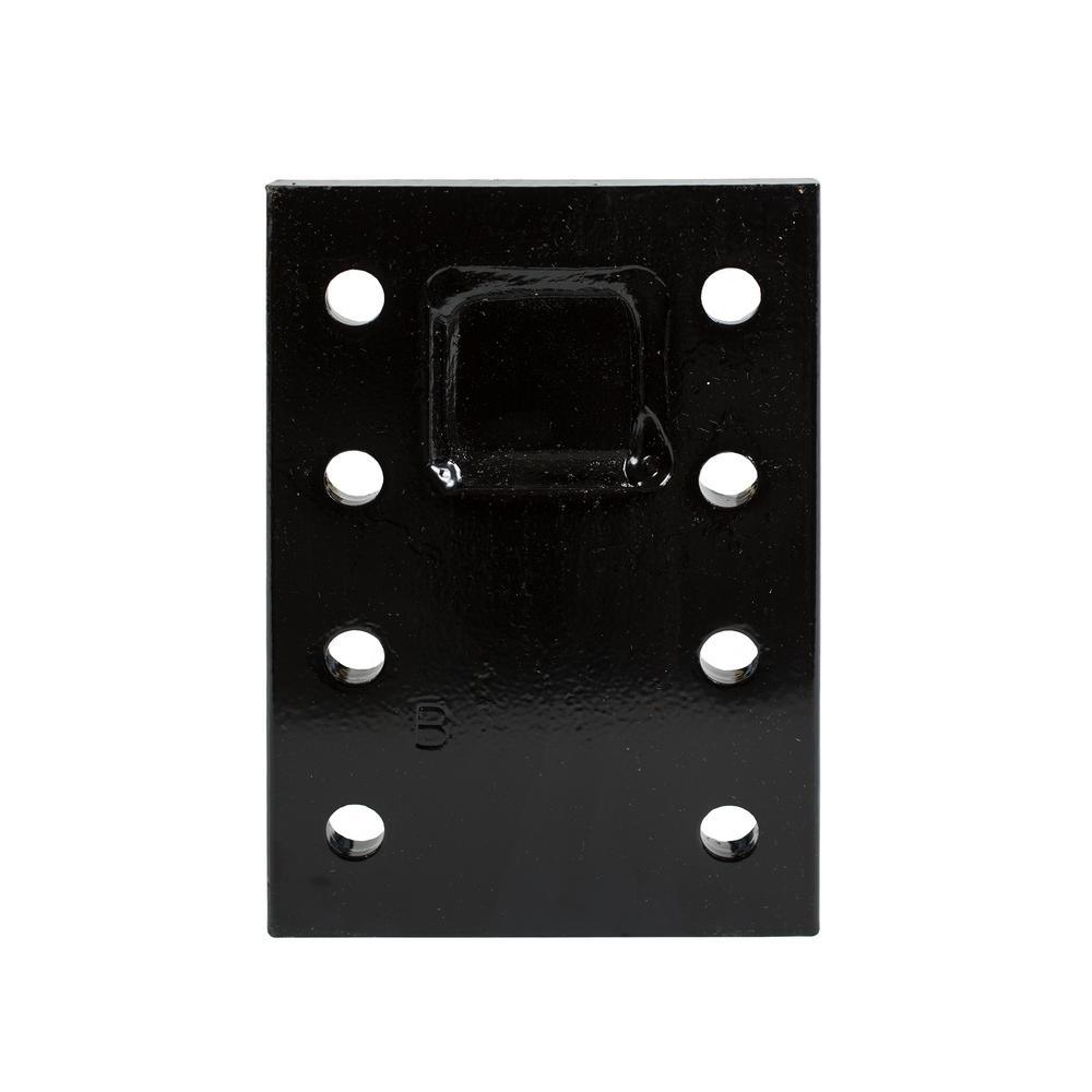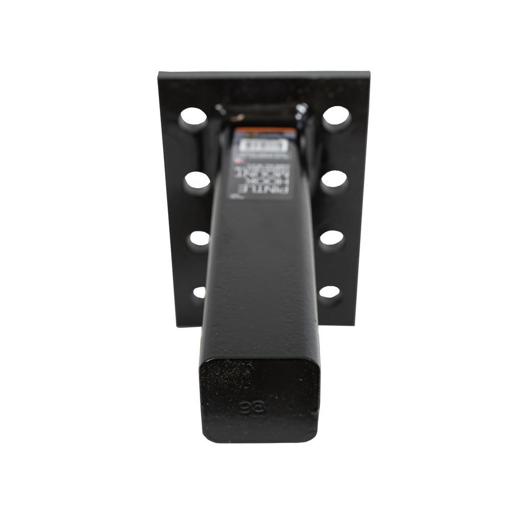 Buyers Products 2 in. Pintle Hook Mount slides into a 2 in. receiver to provide a mounting plate for a variety of pintle hooks and combination hitches. You can mount a pintle hook at either a high or low position to accommodate trailer height. The strong, durable construction features continuous welds and a black powder-coated finish for corrosion resistance.