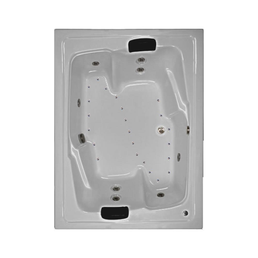Our most popular 2-person tub.What more can we say. With a molded in arm rest for each bather, plenty of room to stretch out in face to face fashion, a comfortable closed cell foam pillow for each bather and plenty of hip and leg room. The Comfortflo whirlpool/air bath 72 in. x 54 in. has it all.We introduced this model to our lineup in 1988 and it hasnt changed one bit because it didnt need too. Its proven to be a top seller-year after-year so we figured if it aint broke, dont fix it. It looks great in an island setting or alcove, allows an overhead shower if desired and has plenty of depth and length for true spa relaxation making it the perfect 2 person bath. The 72 in. x 54 in. has molded in cup holders as well, making it a personal mini refuge at the end of a long hard day. With ample deck area above each bathers foot well, this tub has plenty of room for an out-of-the-way deck mounted faucet and comes standard with a center drain, so both bathers have exactly the same lumbar curve, jet action and relaxation options.Dont settle for second best, this tub has stood the test of time. Our past customers love it and were sure you will too. If your plans call for a large 2 person bath, this tub will fill the bill for design, quality, comfort, value and relaxation.