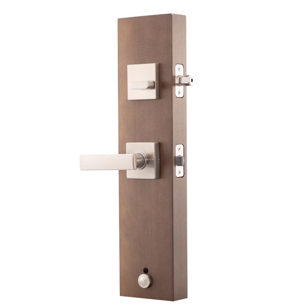 Whether you are remodeling your home or whether you plan to build a new home, this timeless craftsman style front door handle set with craftsman lever interior trim provides the perfect balance between style sophistication and state-of-the-art security. This satin stainless finish is attractive, resistant to smudging and offers outstanding durability. These locksets are designed to fit most residential doors and meet the uncompromising grading standards of the ANSI for residential and builders hardware.