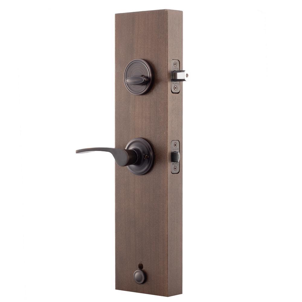 Whether you are remodeling your home or whether you plan to build a new home, this timeless craftsman style front door handle set with right hand Scandinavian lever interior trim provides the perfect balance between style sophistication and state-of-the-art security. This Tuscan bronze finish is attractive, resistant to smudging and offers outstanding durability. These locksets are designed to fit most residential doors and meet the uncompromising grading standards of the ANSI for residential and builders hardware.