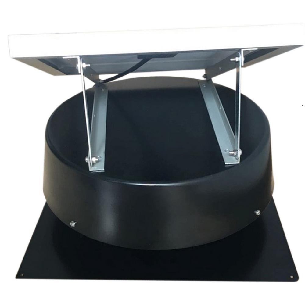 The Remington Solar 660 CFM Solar-Powered Roof-Mount Exhaust Fan will help remove excess heat and moisture from your small attic to protect your roofing system from premature deterioration. This fan is ideal for small attic spaces, garages, tool sheds, chicken coops, utility spaces, greenhouses, and shipping containers. The Solar Powered fan requires no wiring, uses no electricity, and works with your existing intake vents to help lower the temperature in your attic. The 12-Volt DC brushless motor provides airflow up to 660 CFM and requires no maintenance. The impact resistant, 10-Watt solar panel has a tilt to provide ideal sun exposure. Recommended usage for this unit is 1 unit per 900 sq. ft. of attic space with a minimum intake ventilation of 300 sq. in. of net free area. Comes in black only.