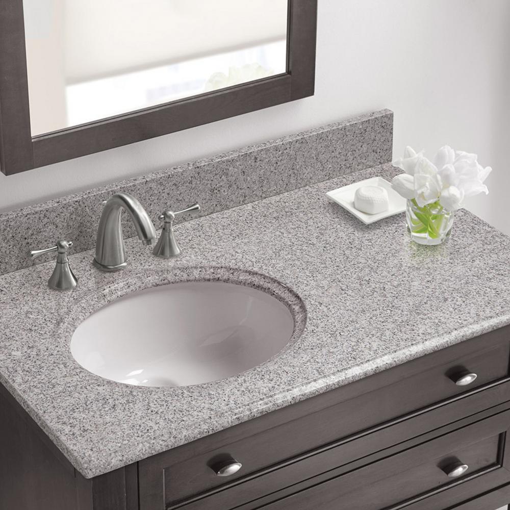 Transform your bathroom with a beautiful granite vanity top with pre-attached under mount vitreous china bowl. This top is perfect for quick and easy remodels. Obtain the beauty and durability of natural stone without hiring a professional. It is easy to install and fits directly on most standard 36 in. vanity cabinets. It is sure to give your bathroom that stylish, finishing touch.
