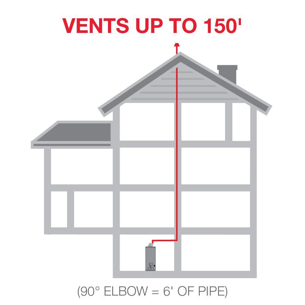 • Gas power vent water heaters offer flexible venting options using PVC, ABS, or CPVC vent pipe options with either vertical or horizontal termination