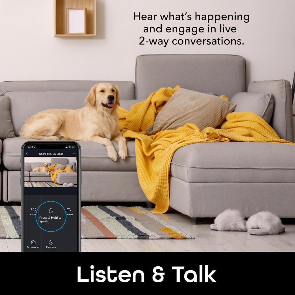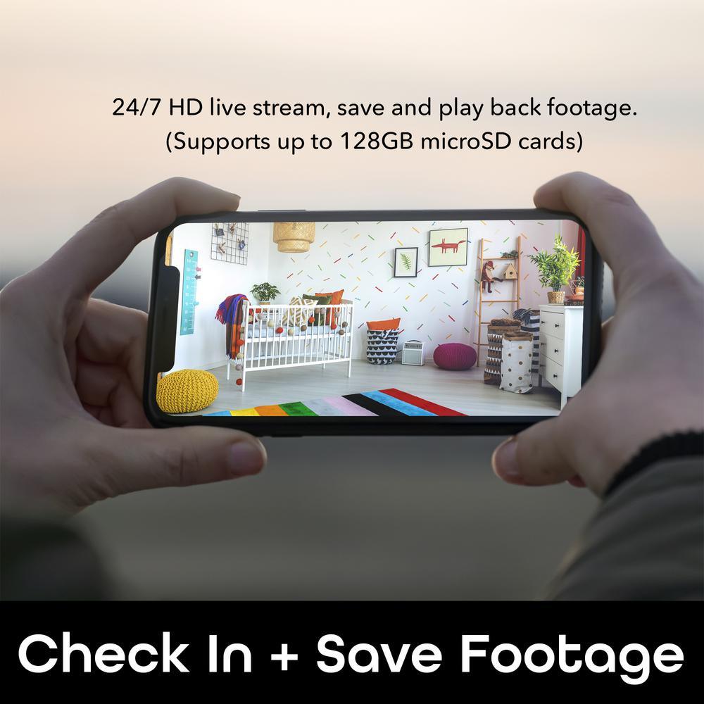 CONTROL FROM ANYWHERE: Using your home Wi-Fi, you can control and remotely access real-time and stored footage directly from your smartphone. With a mic and speakerphone built in, you can also interact or quietly listen from any location.