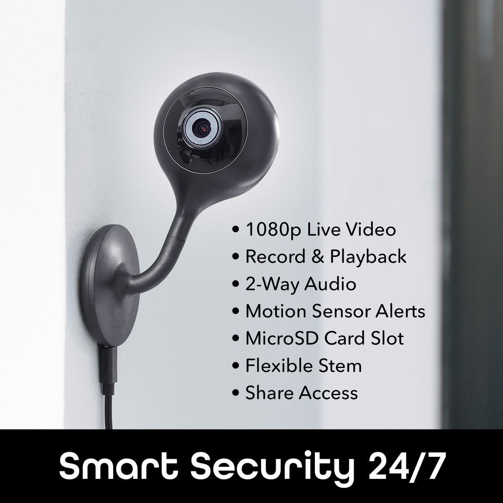 The Geeni LOOK 1080p HD Smart Wi-Fi Security Camera gives you peace of mind, anywhere, anytime. With a built-in motion sensor, you can monitor every corner in your room—all while recording and storing footage. Plus, you can get alerts when there's motion at home. You'll be notified and can view what's happening live or review it later. This smart home security camera system works with your home Wi-Fi—no hub required! Simply download the Geeni app, mount your security camera, and connect. It also works with Amazon Alexa, Google Assistant and Microsoft Cortana for your ultimate convenience. The various unbeatable features make the LOOK 1080p security camera the ultimate choice in home security systems. The Micro SD card slot supports up to 128GB of local storage (Micro SD card not included). HD night vision and image-enhancing technology allow you to see all light and dark activity as clear as day. Plus, the powerful built-in mic and speakerphone let you interact or quietly listen from any location for all-around control and security. The Geeni LOOK 1080p HD Smart Security Camera is only compatible with 2.4GHz Wi-Fi networks. Whether it’s used for monitoring shops, meeting rooms, pets, nannies, or elderly, simply plug the camera into an outlet and begin protecting what matters to you most. Geeni is the market leader of affordable and approachable smart home devices.The Geeni brand is at the vanguard of technology and features, but user-friendly enough for everyone.