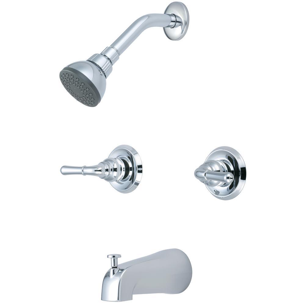 Discover P-1230, the Elite 2-Handle Tub and Shower Set available in Polished Chrome or Brushed Nickel Finishes. This set comes complete with lever handles, diverter, Showerhead with Arm/Flange, and a 8 in. Cast Brass Valve body. Olympia Faucets are built to last, easy to install and perfect for your next project.