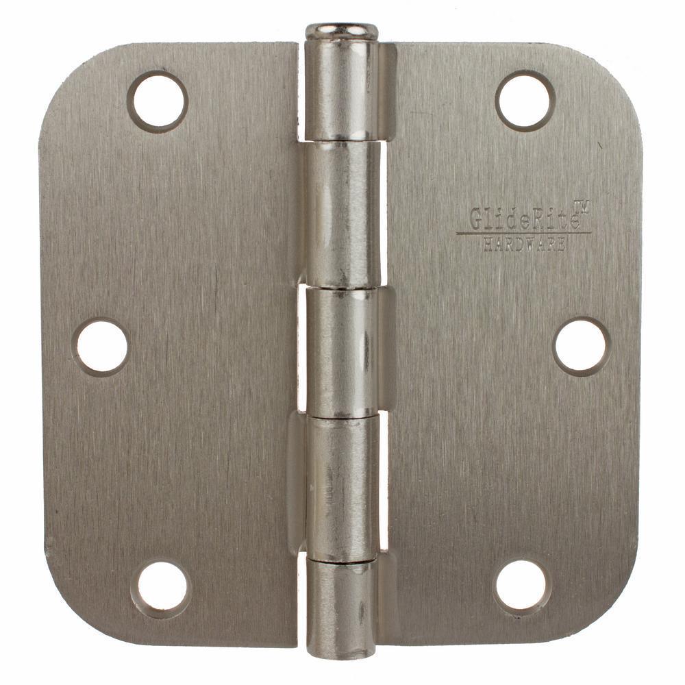 GlideRite Hardware brand interior residential steel full mortise door hinges. Size 3-1/2 in. x 3-1/2 in. with 5/8 in. radius corners. Please see image for radius sizes. Fully assembled hinges with matching installation screws.