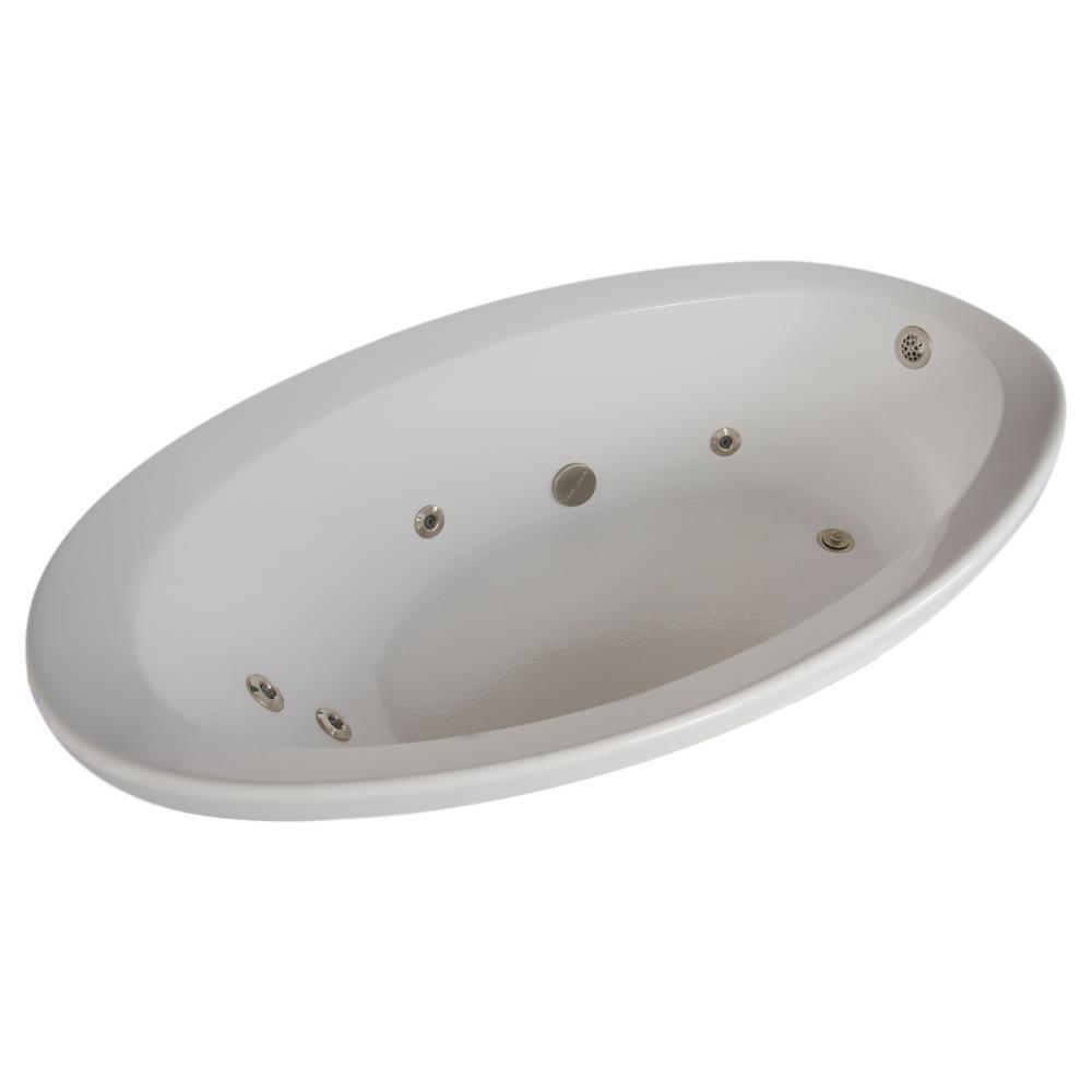 Create elegance and luxury without sacrificing space with this classic oval whirlpool bathtub.Relax in comfort with its curved lumbar backrest and let the fully adjustable double back and four side body jets massage your cares away. Soak up to your chin in its 18 in. depth and bathe without feeling confined in its extra wide 38 in. span, all the while accommodating a tight space with its 56 in. length. Its curved shape and inward sloping deck create a designer look compared to rectangular tubs with flat decks. The streamlined design is not only elegant but also allows for easy cleaning. Rigid PVC tubing provides 100% drainage of the lines, so water can remain pure and hygienic. A galvanized steel base supports the tub and ensures long-lasting quality. Use this tub for drop-in installations in either a free-standing island cabinet or a built-in alcove setting for a beautiful bathroom that says custom all the way. To further customize your limited space and prevent water being trapped on the corners of a drop-in cabinet, install one of our hand-held showers or install an oval shower rod and curtain. Enjoy all the benefits of hydrotherapy and classic design in your small space with this oval tub.
