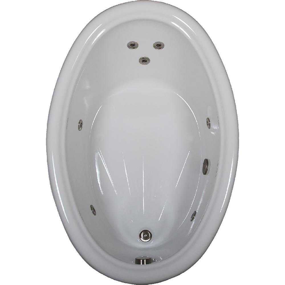 Let the refined style of this oval whirlpool bath set the tone for the rest of your bathroom. Its smooth interior gives it an impeccable look that will complement almost any design plan. The rounded raised deck softens the look of this bathtub. A channel detail around its perimeter adds distinction without taking away from its classic design. The bottom of the tub features an arrayed texture, which directs water down the drain and provides some slip resistance. Soothe your tired muscles with seven therapeutic spa-quality jets and take satisfaction in knowing that youre adding to your well-being by investing in this choice whirlpool tub.
