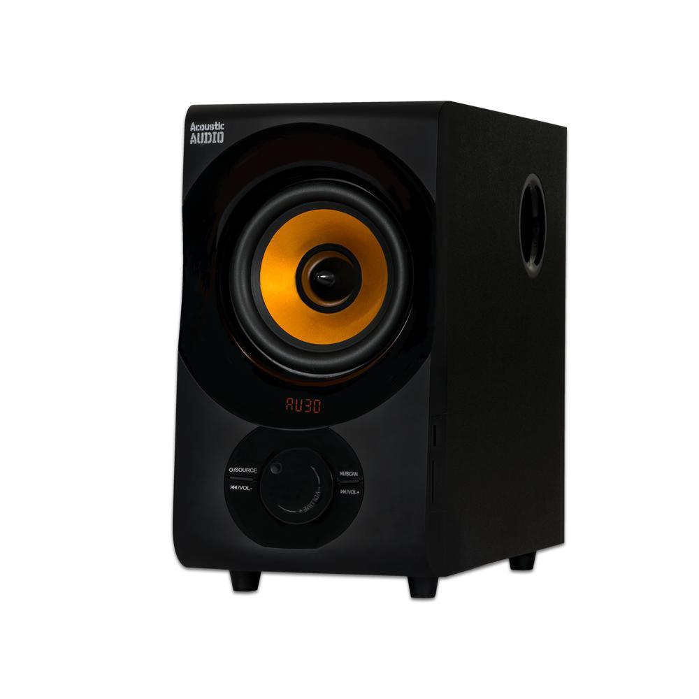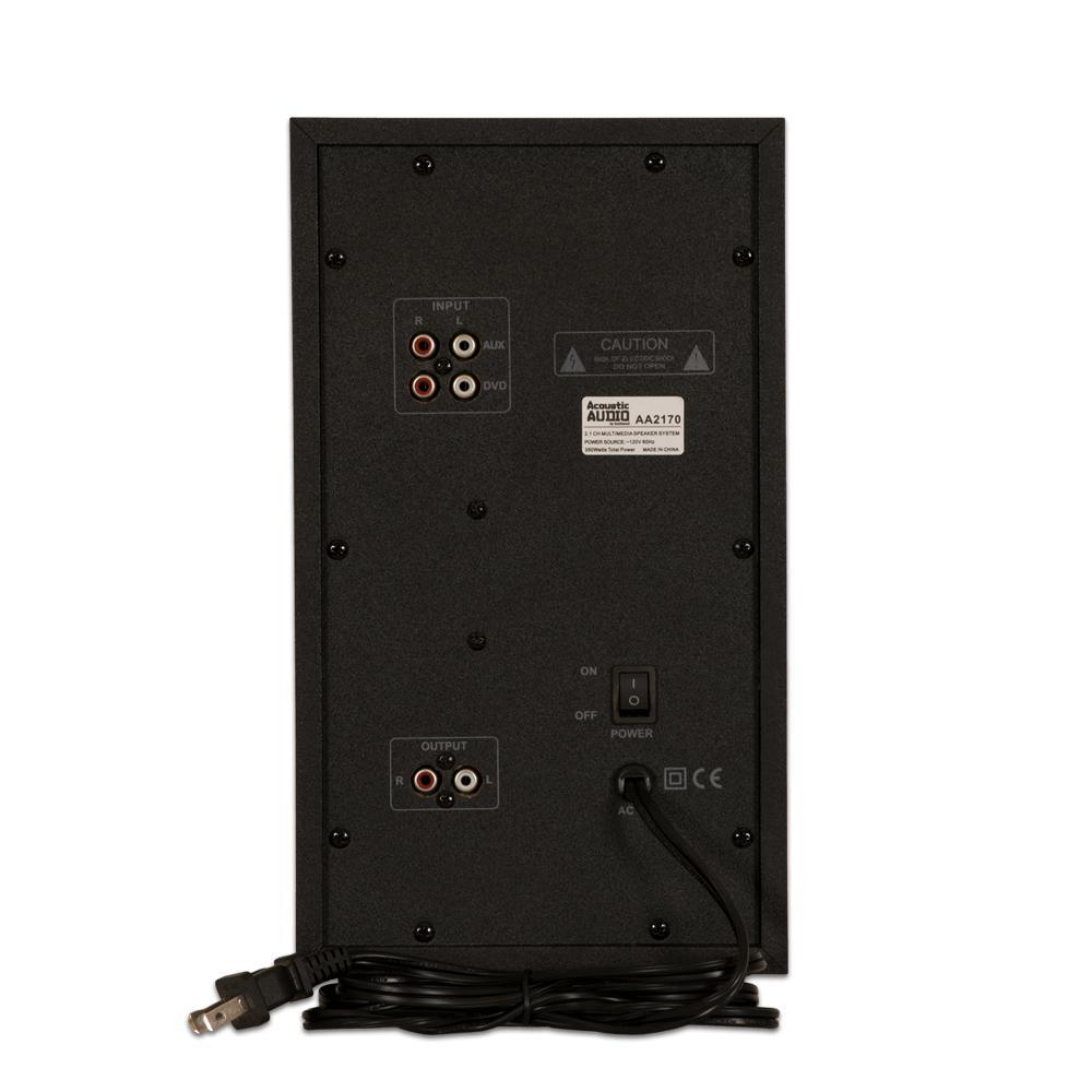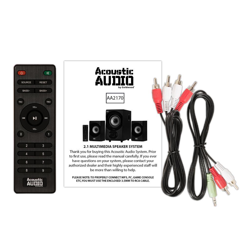- Acoustic Audio AA2170 powered Bluetooth 2.1 multimedia home speaker system with USB / SD, power rating is 350-Watt system power, frequency response is 40Hz-20 kHz