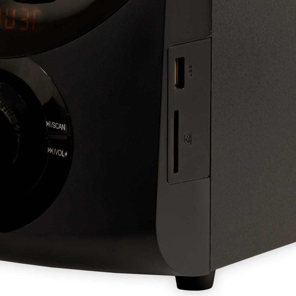 - Built in Bluetooth receiver, integrated audio amplifier, enhanced bass boost design, front panel volume, menu and input controls, illuminated display, USB/SD drive/card reader, multiple function remote control