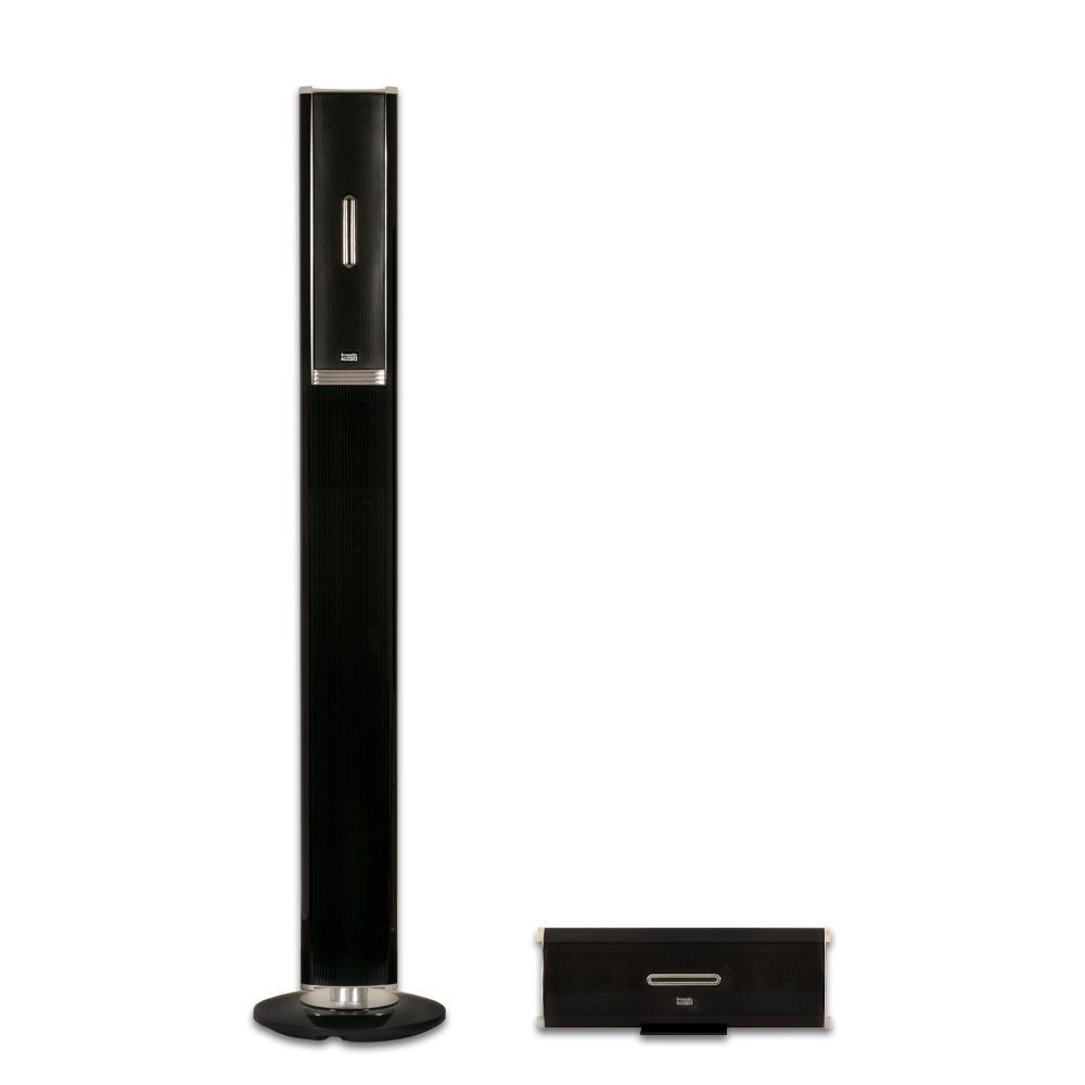 - One 3-way bookshelf center speaker (H x W x D): 5 in. x 13.25 in. x 3 in., four 3-way tower speakers (H x W x D): 43.75 in. x 4.5 in. x 2.75 in. with 9 in. round bases
