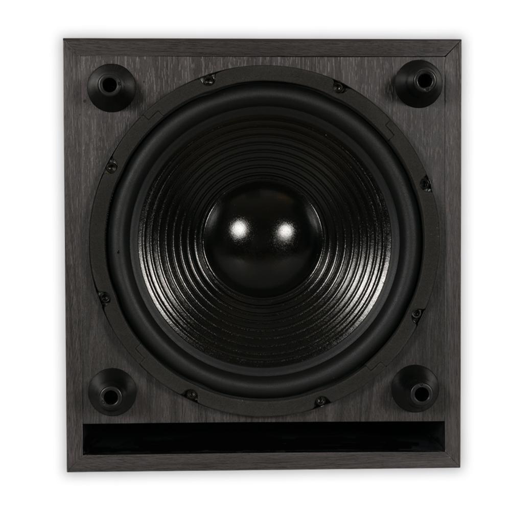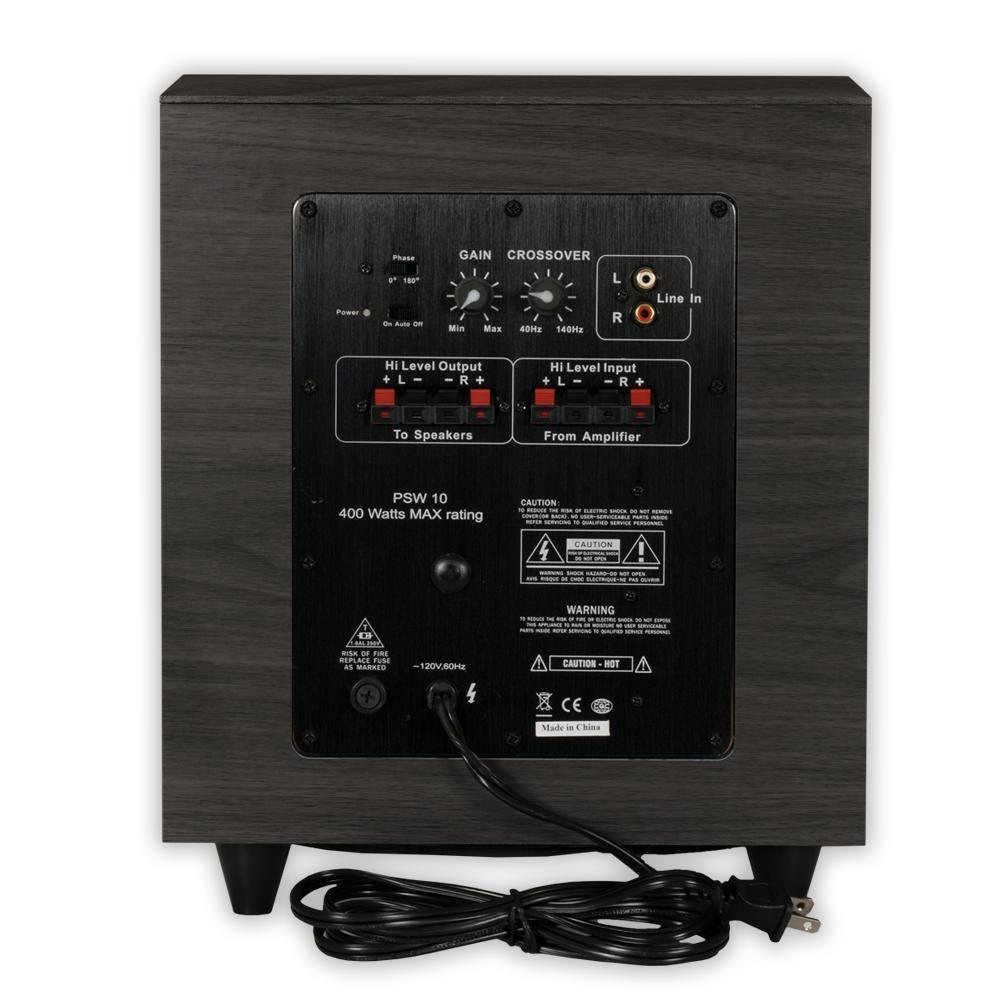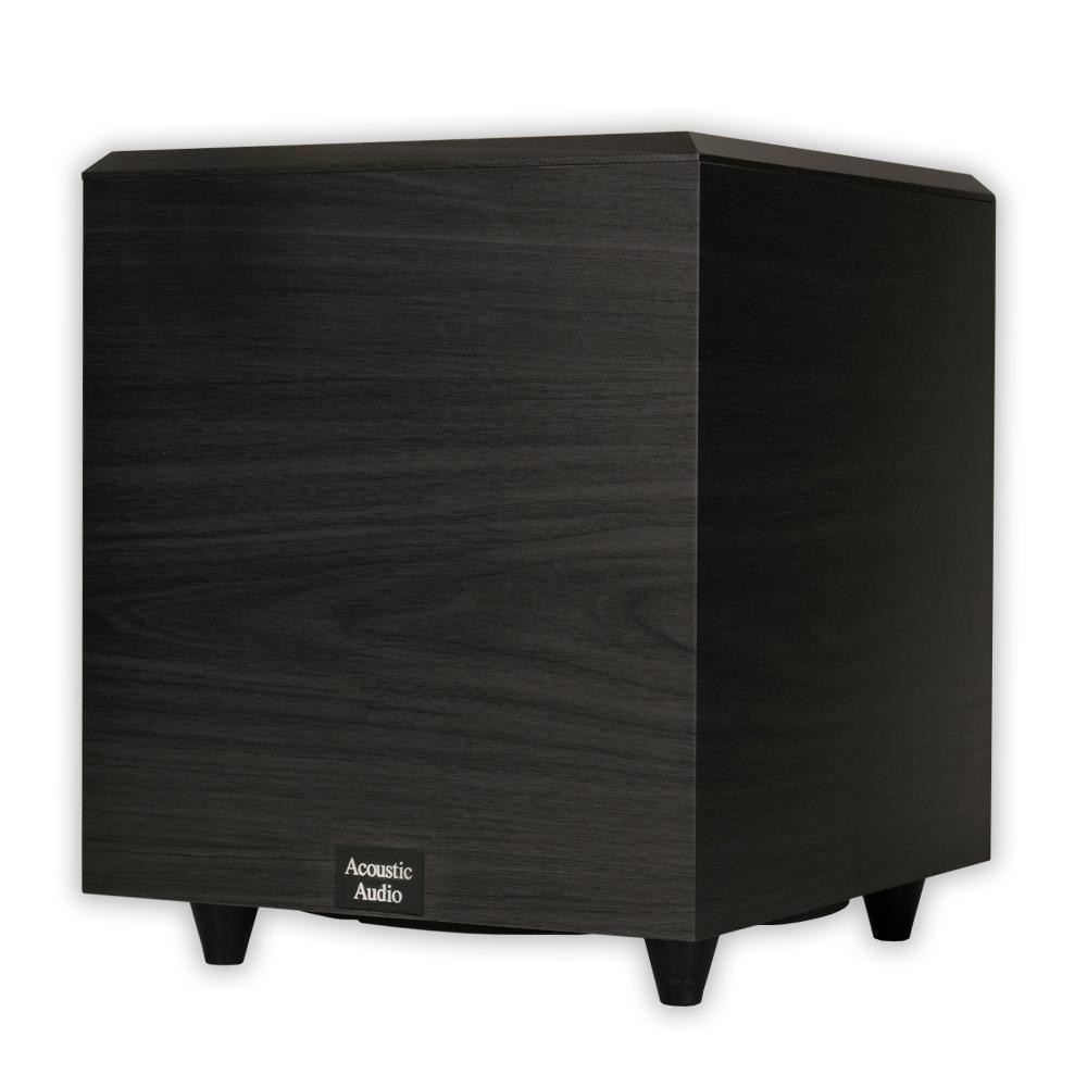 Acoustic Audio's Specialty Series powered subs immerse you in the action of your fast-paced movies and sports. Add impact to your favorite movies and full-bodied bass to your favorite tunes. Its stylish design and superior sound make it a smart addition to any home theater. Its elegant wood finish is refined and complements most flat-panel displays. It features a high-current, 400-Watt Amp which effortlessly drives its down-firing 10 in. woofer for dynamic low-frequency effects. The high and low inputs let you use any receiver or processor. The 10 in. woofer utilizes a long excursion cone for deep, accurate response. The MDF bass-reflex enclosure features internal bracing, and a 25Hz to 250Hz frequency response delivers thumping bass from all your action movies and CD albums.