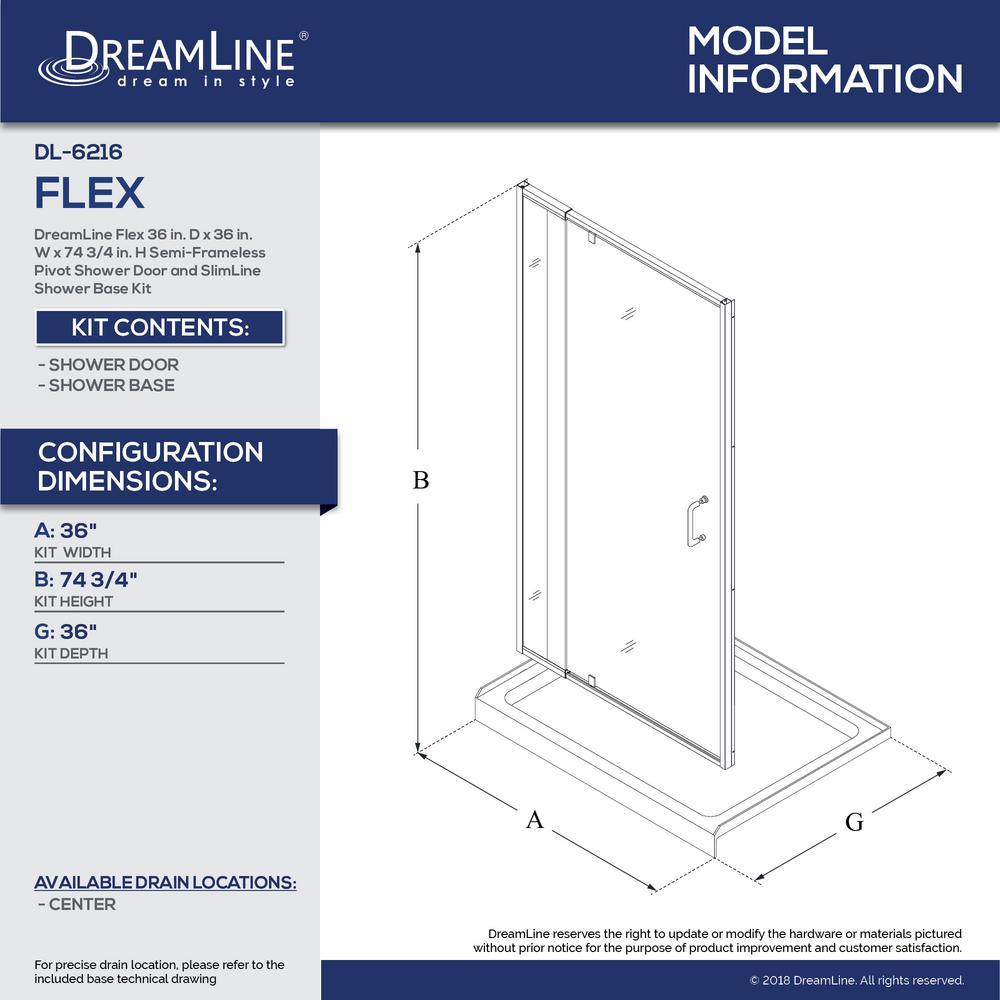 The DreamLine Flex pivot shower door and SlimLine base kit offers modern appeal at a budget friendly price point. The versatile Flex model combines cutting-edge pivot hardware, simple installation and dependable performance. Complete your bathroom with the elegant and innovative look of the Flex shower door and SlimLine base kit from DreamLine for the complete solution for your shower project.