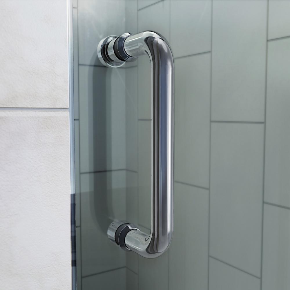 • Flex shower door: 1/4 in. (6 mm) thick certified clear tempered glass, reversible for right or left door opening installation